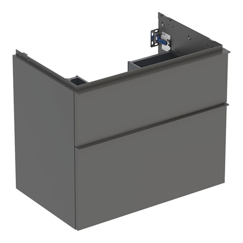Geberit Icon Unterschrank für Waschtisch,wandhängend, mit zwei Schubladen,Griffe zum Öffnen, Schubladen mit Selbsteinzug, Griffe austauschbar, Schubladen ohne Geruchsverschlussausschnitt, Feuchtigkeitsbeständig, Vormontiert geliefert, aus Hochverdichteter Dreischicht-Holzspanplatte| Hersteller: | Geberit |