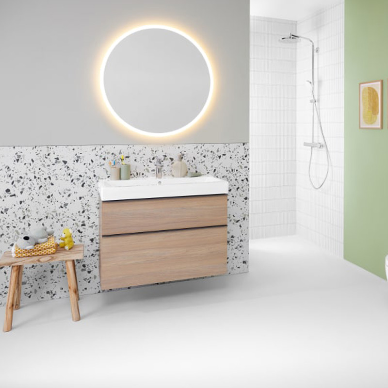Geberit Icon Unterschrank für Waschtisch,wandhängend, mit zwei Schubladen,Griffe zum Öffnen, Schubladen mit Selbsteinzug, Griffe austauschbar, Schubladen ohne Geruchsverschlussausschnitt, Feuchtigkeitsbeständig, Vormontiert geliefert, aus Hochverdichteter Dreischicht-Holzspanplatte| Hersteller: | Geberit |