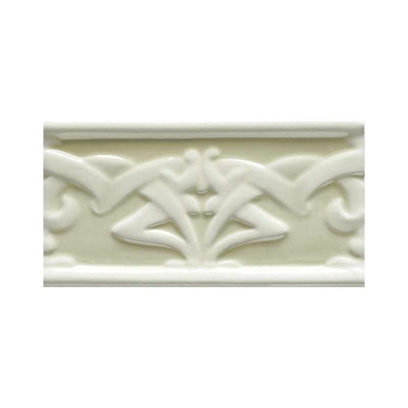 Gewölbte Bordüre, steht plastisch aus der Wand, kann innerhalb der Fliesenreihen verlegt werden.