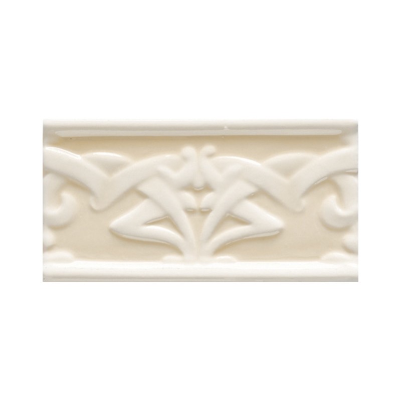 Gewölbte Bordüre, steht plastisch aus der Wand, kann innerhalb der Fliesenreihen verlegt werden.