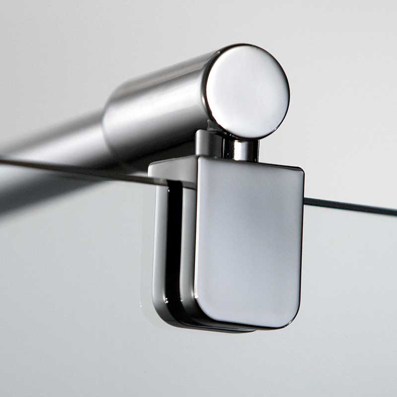 Aperto Drehtür für den Einbau in einer gemauerten Nische, 2 teilig, mit je 1 Festelement und 1 pendelbaren Drehtür, 180° Schwenkbar. Heb-Senk Mechanismus im Profil, sehr Montagefreundlich, Dank Clipsprofil abgedeckte Schraublöcher. Mit 8 mm Seitenteil und 6 mm Pendeltür aus Einscheiben-Sicherheitsglas (ESG), mit innen glasbündigen Scharnieren und Clipsprofil. Zur Montage auf einer Duschwanne. Dank des Clipsprofils ist die Montage sehr einfach und die Schrauben werden durch das Clipsprofil verdeckt. Flächenbüniger Scharnier mit Heb,- Senkmechanismus. Beim Öffnen werden die Türen angehoben, beim Schließen senken sich diese ab. Zwei formschöne Bügelgriffe vermitteln eine angenehme Haptik.