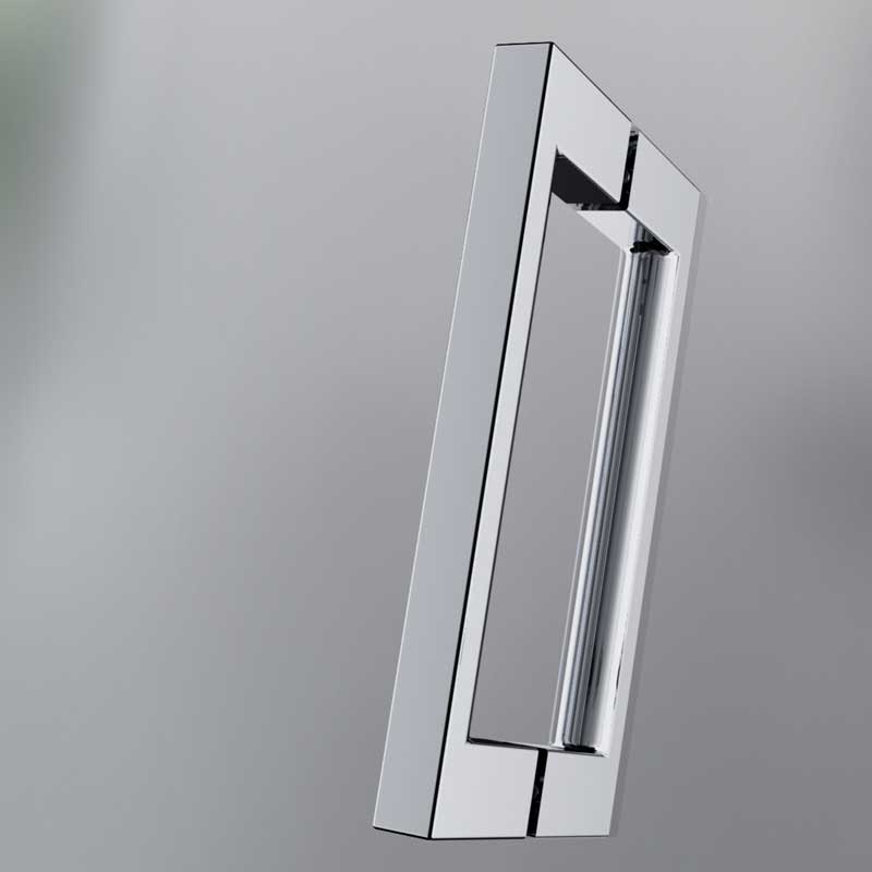 Ein komfortabler Einstieg in jede Raumsituation: Das Aperto Scharnier ermöglicht eine Türöffnung nach außen sowie innen und damit vielfältige Gestaltungsmöglichkeiten.Eckeinsteig Aperto 4 teilig mit 8 mm Seitenteilen und 6 mm Pendeltüren aus Einscheiben-Sicherheitsglas (ESG), mit innen glasbündigen Scharnieren und Clipsprofil. Zur Montage auf einer Duschwanne. Dank des Clipsprofils ist die Montage sehr einfach und die Schrauben werden durch das Clipsprofil verdeckt. Flächenbüniger Scharnier mit Heb,- Senkmechanismus. Beim Öffnen werden die Türen angehoben, beim Schließen senken sich diese ab. Zwei formschöne Bügelgriffe vermitteln eine angenehme Haptik.