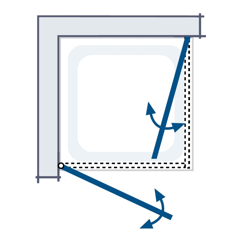 Die HSK Exklusiv Eckeinstieg Duschkabine 2-teilig besteht aus zwei Türelementen mit Heb- und Senkprofil zum sicheren Bodenabschluss. Jede der Glastüren besteht aus 6 mm starkem ESG Sicherheitsglas. Die Türen sind Pendeltüren mit stabilen durchgehenden Profilen zur Wandmontage. Sie ermöglichen die Öffnung in den Raum und auch in den Duschbereich. Auf diese Weise sind Betreten und Verlassen der Dusche bei unterschiedlicher Raumgestaltung immer komfortabel mit einem breiten Zugang möglich.