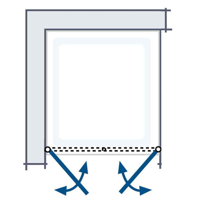 Pendeltür fzur Kombination mit einer Seitenwand, 2 teilig, mit je 2 pendelbaren Drehtüren, 180° Schwenkbar. Heb-Senk Mechanismus im Profil, sehr Montagefreundlich