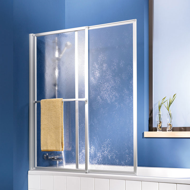 | Bauweise: | Badewannenaufsatz Schiebeelement, beidseitig um 180° schwenkbar, serienmäßig mit einem praktischen Handtuchhalter ausgestattet. |