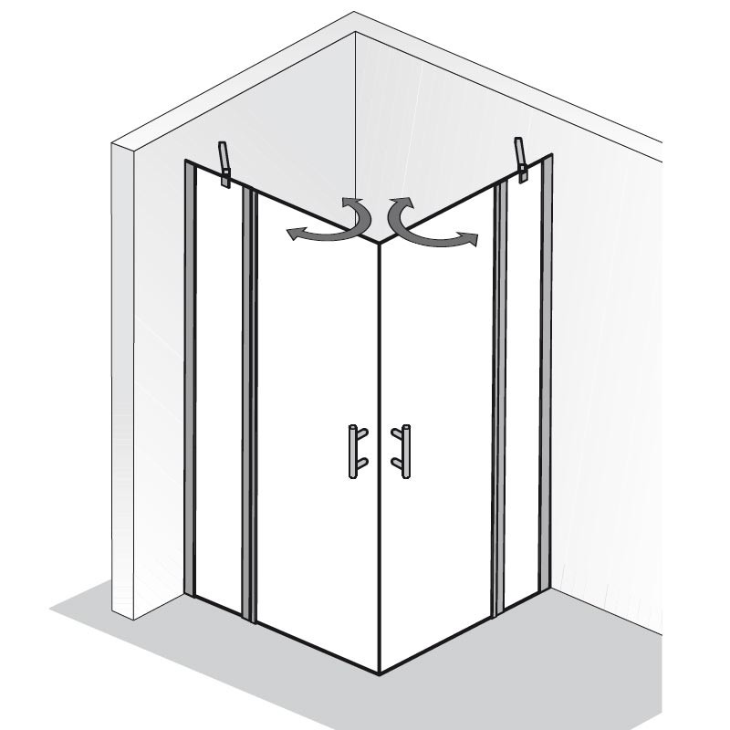 Die Duschkabine HSK Favorit Nova Eckeinstieg ist 4-teilig. Zwei feste Seitenelemente werden mit schlanken Montageprofilen an den Badezimmerwänden montiert. Das Montagesystem ist einfach und sorgt für die notwendige Stabilität der Dusche, die einen großzügigen Eckeinstieg mit leichtgängigen Pendeltüren bietet. So entsteht auch bei unmittelbar neben der Dusche geplanten Badeinbauten ein breiter Zugang mit einer Einstiegsbreite bis zu 690 mm bei vollständig geöffneten Türhälften.