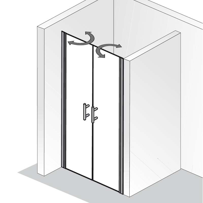 Die 2 Türflügel verfügen über einen 180° Scharnier und lassen sich nach Innen und nach Außen öffnen. Als sehr Praktisch erweist sich diese Technik. Nach dem Duschen lassen Sie die Türen einfach nach Innen geöffnet stehen und die Dusche trocknet schnell ab. Ein integrierter Heb- Senk Mechanismus, schon die unter Wasserleisten und erhöht die Dichtigkeit. 5 mm starkes Einscheiben Sicherheitsglas sorgt für hohe Transparenz im Badezimmer und Stabilität. Ein formschöner und stabiler Stangengriff gewährt angenehmes Öffnen und Schließen dieser Dusche.