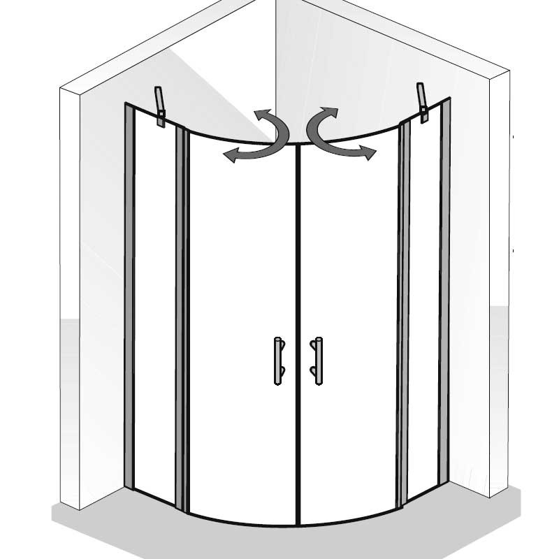 Für spürbar mehr Komfort im Alltag lassen sich die Türen flexibel nach innen und außen öffnen. Dabei sorgt der integrierte Hebe-Senk-Mechanismus dafür, dass die Türen beim Öffnen leicht angehoben werden – das schont die Bauteile, unterstützt eine saubere Bewegung und trägt zu einer langlebigen Funktion bei. Auch in der täglichen Nutzung überzeugt die Duschabtrennung durch praktische Details: Zwei handliche Stangengriffe liegen bereits bei und ermöglichen ein bequemes Öffnen und Schließen.