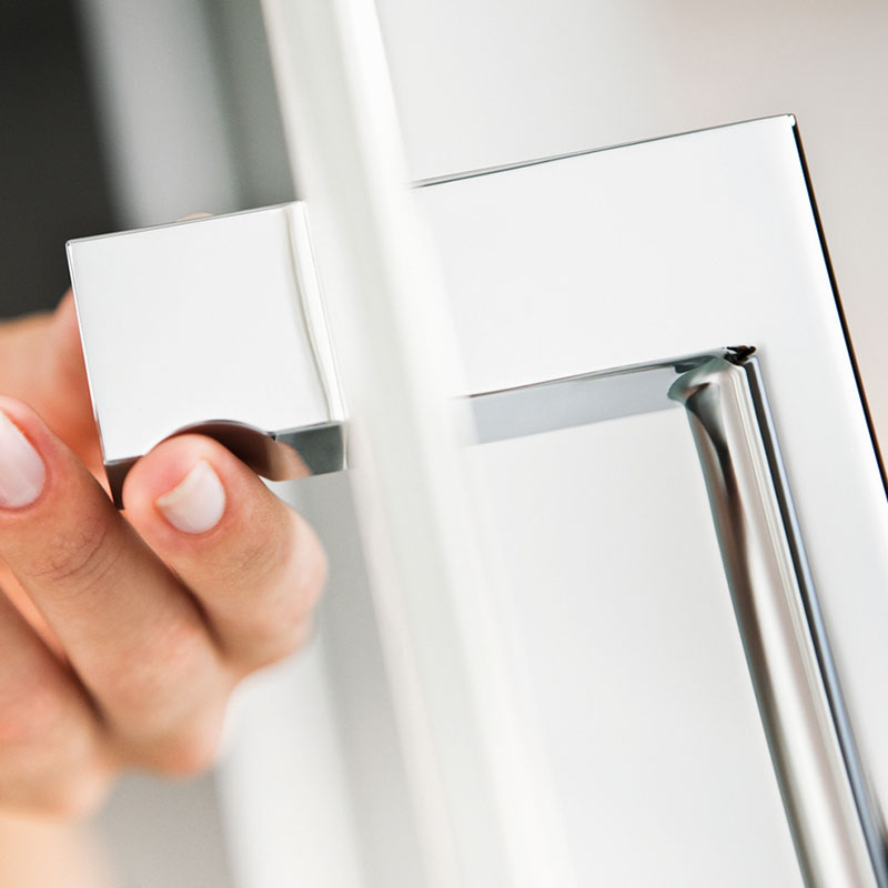 Das besondere Merkmal der HSK K2P Drehtür und Nebenteil in Nische ist das günstige Gleichgewicht von Detaillösungen und Design. Durch die Kombination des durchgängig mit einer Montageschiene an der Wand befestigten Seitenteils mit einer Pendeltür können deshalb auch Nischenöffnungen mit ungewöhnlichen Maßen vollständig vom Rest des Badezimmers abgetrennt werden. Das 8 mm starke Sicherheitsglas überzeugt durch die stabilen Scharniere, die zugleich die Bewegung in einem Hebe- und Senksystem gewährleisten und auf der Innenseite glasbündig eingesetzt sind. Damit ist jede Laufrichtung der Pendeltür leichtgängig und zugleich der sichere Abschluss mit dem Boden in der Endstellung gesichert. Komfortabel öffnet sich die HSK K2P Drehtür und Nebenteil in Nische nach dem Gebrauch der Dusche in den Innenbereich. Wasser kann auf der wahlweise mit pflegeleichtem Edelglas beschichteten Tür in die Duschwanne ablaufen. Die elegante Optik mit dem Stangengriff auf der Außenseite und dem platzsparenden Knaufgriff auf der Innenseite harmoniert mit den klaren Linien des Teilrahmens, der auf Längsprofile vertraut, um die 200 cm hohen Elemente zur Geltung zu bringen. Die HSK K2P Drehtür und Nebenteil in Nische ist der gelungene Beweis, dass die Umsetzung bewährter Qualitätsansprüche und individuelle Designwünsche eine vorteilhafte Kombination ist.