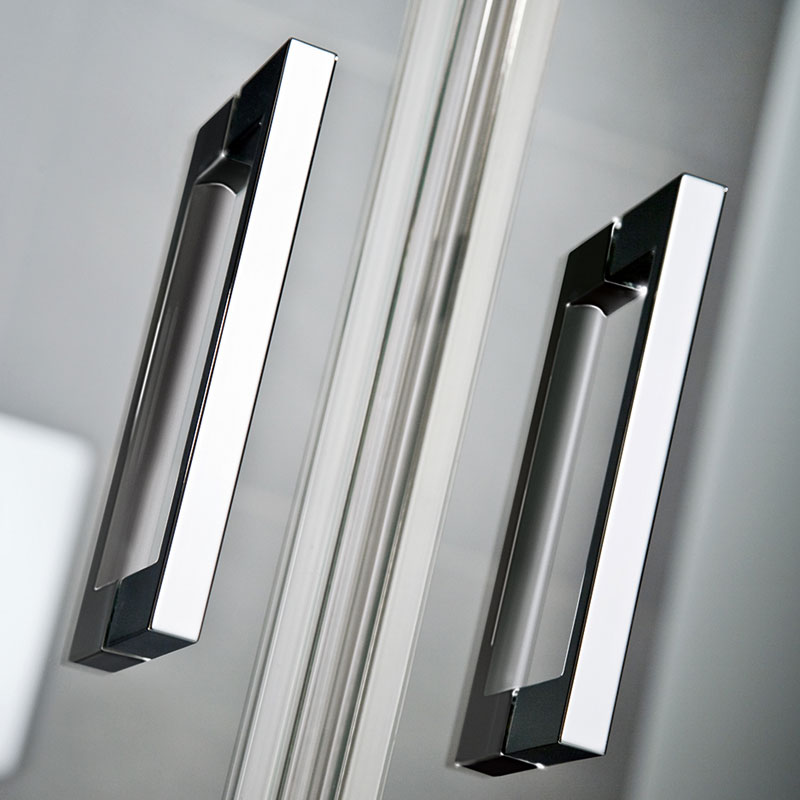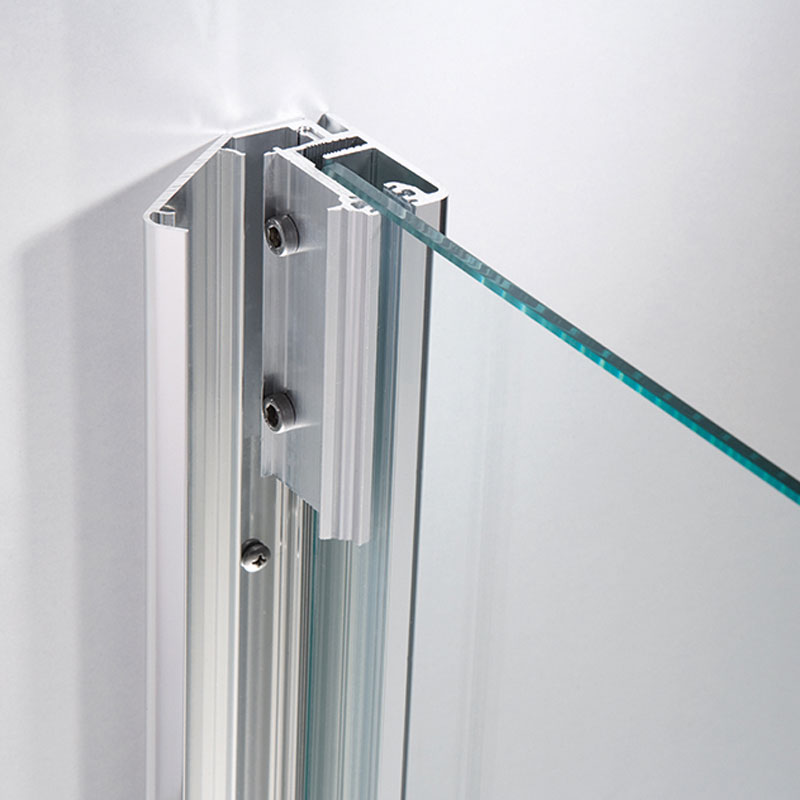 | Bauweise: | 2 pendelbare Drehtüren, nach Innen- und Außen öffnend, 8 mm Einscheiben-Sicherheitsglas (ESG) mit innen glasbündigen Scharnieren & Clipsprofil, Profil als Wandanschluß, zur Kombination mit einer Seitenwand, Montagefreundlich | |||
