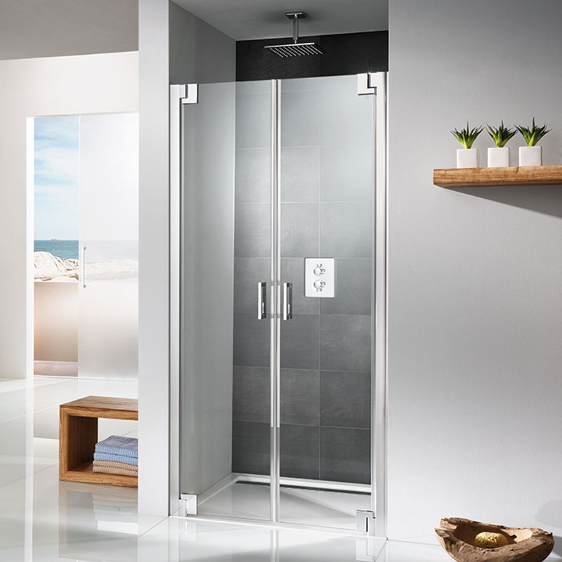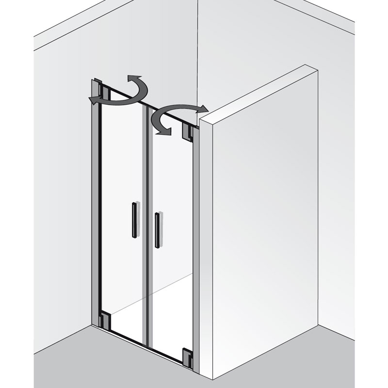 Die HSK K2P Pendeltür in Nische erfüllt Wünsche und Ansprüche bei Abmessungen. Die Pendeltüren der Duschkabine verfügen über eine leichtgängige Hebe- und Senktechnik, mit der die Elemente aus 8 mm starkem Sicherheitsglas sowohl in den Raum wie auch in den Duschbereich bewegt werden. Nach dem Duschen perlt das Wasser bei nach innen geöffneten Türen direkt in den Nassbereich und verkürzt die Zeit für die ohnehin einfache Pflege der stabilen Glastüren. Die Brillanz der in verschiedenen Ausführungen erhältlichen Echtglaselemente bleibt zusätzlich dank der glasbündig innen eingebauten Scharniere makellos. Alle Verbindungen der HSK K2P Pendeltür in Nische sind durchdacht und erfüllten hinsichtlich Qualität und zeitgemäßem Design höchste Ansprüche. Variationen des Klassikers dieser Doppeltür für Duschen in einer Nische bieten besondere Glasarten und Farben. Der Stangengriff auf der Außenseite der HSK K2P Pendeltür in Nische kann in 2 unterschiedlichen Längen bestellt werden. Im Innenbereich gewähren elegante Knaufgriffe Bewegungsfreiraum beim Duschen und wenig Ansatz für Gebrauchsspuren.