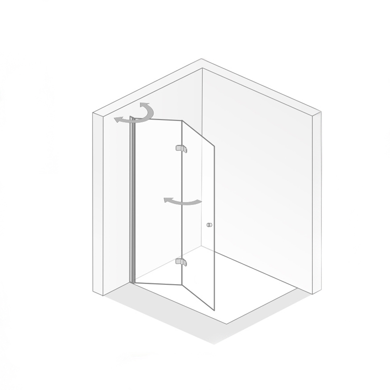 Walk IN Drehfalttür Dusche mit innen glasbündigen Scharnieren und Knaufgriff, Knaufgriff mit Gummieinlagen, sehr Montagefreundlich
