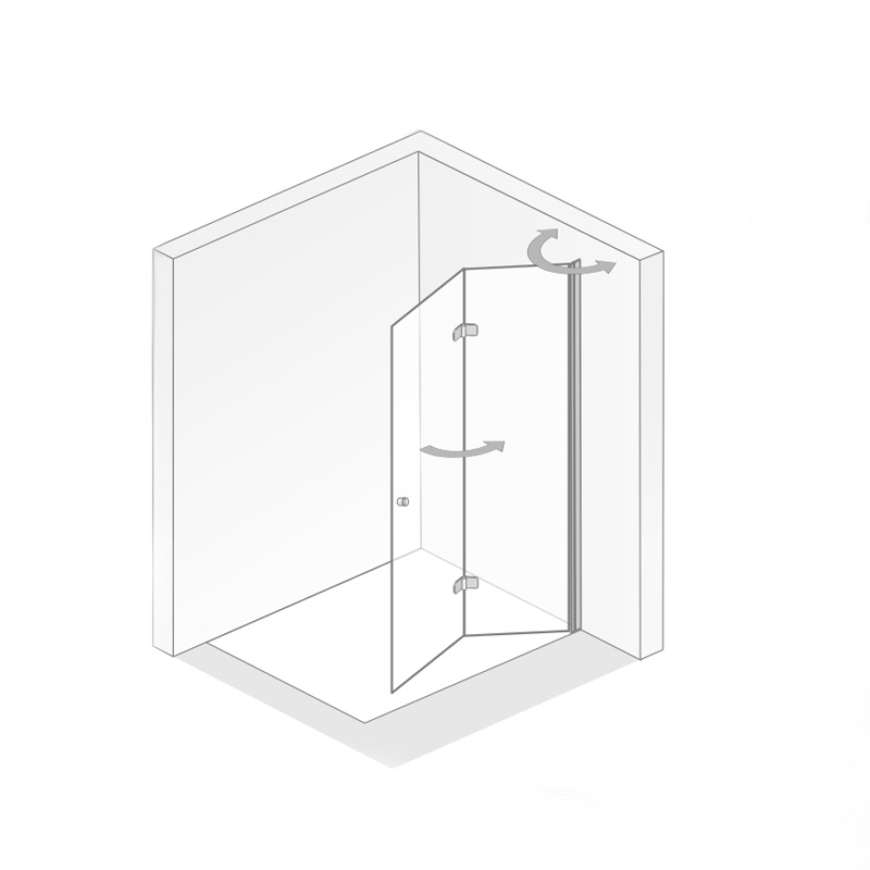 Walk IN Drehfalttür Dusche mit innen glasbündigen Scharnieren und Knaufgriff, Knaufgriff mit Gummieinlagen, sehr Montagefreundlich