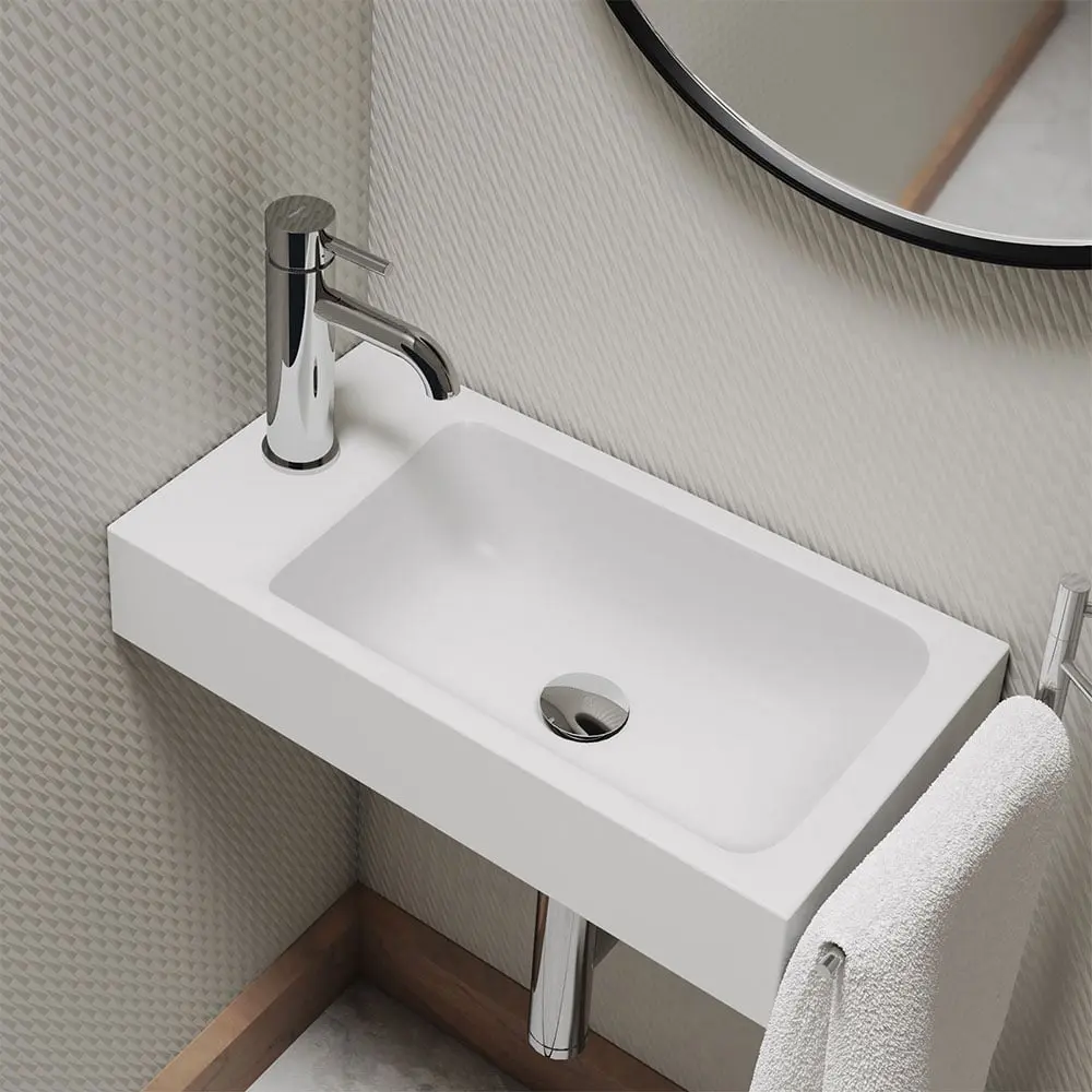 wandhängendes Handwaschbecken im puristischen Rechteckdesign mit klaren Kanten