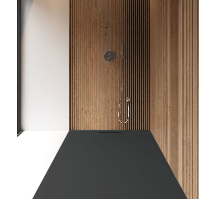 Ein besonderes Highlight dieser Design-Duschfläche ist der innovative Schlitzablauf, der nahtlos in das minimalistische Design integriert ist. Dieser Ablauf fügt sich diskret in die Gesamtoptik ein und sorgt gleichzeitig für einen schnellen und effizienten Wasserablauf. Das Ergebnis ist ein sauberes, klares Erscheinungsbild ohne störende Unterbrechungen, das die moderne Ästhetik Ihres Badezimmers unterstreicht.