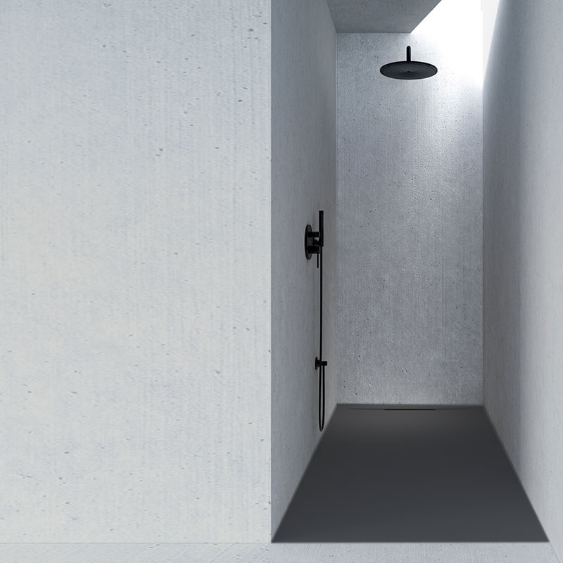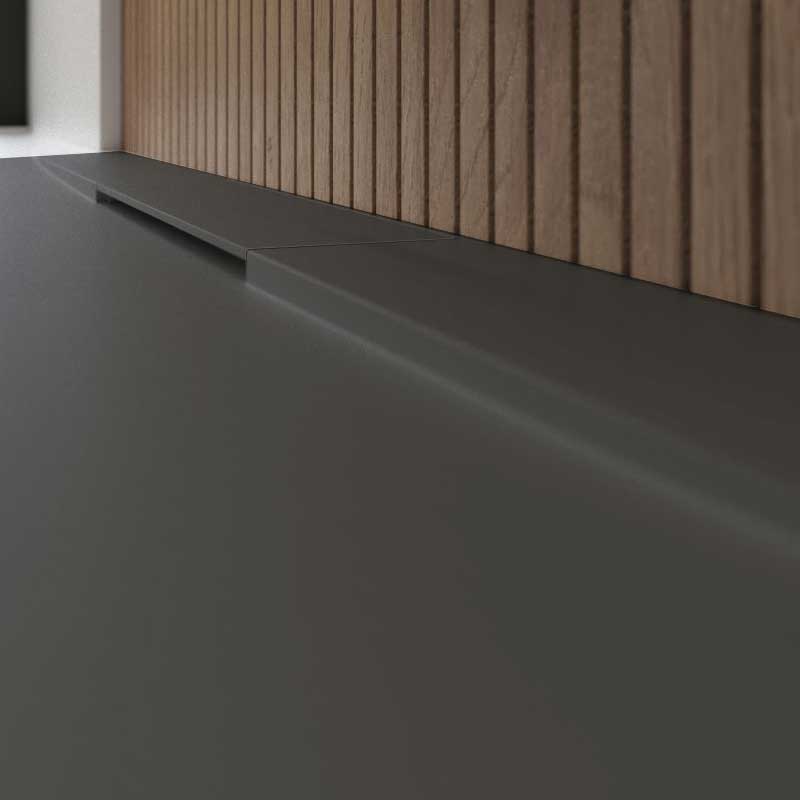 Ein besonderes Highlight dieser Design-Duschfläche ist der innovative Schlitzablauf, der nahtlos in das minimalistische Design integriert ist. Dieser Ablauf fügt sich diskret in die Gesamtoptik ein und sorgt gleichzeitig für einen schnellen und effizienten Wasserablauf. Das Ergebnis ist ein sauberes, klares Erscheinungsbild ohne störende Unterbrechungen, das die moderne Ästhetik Ihres Badezimmers unterstreicht.