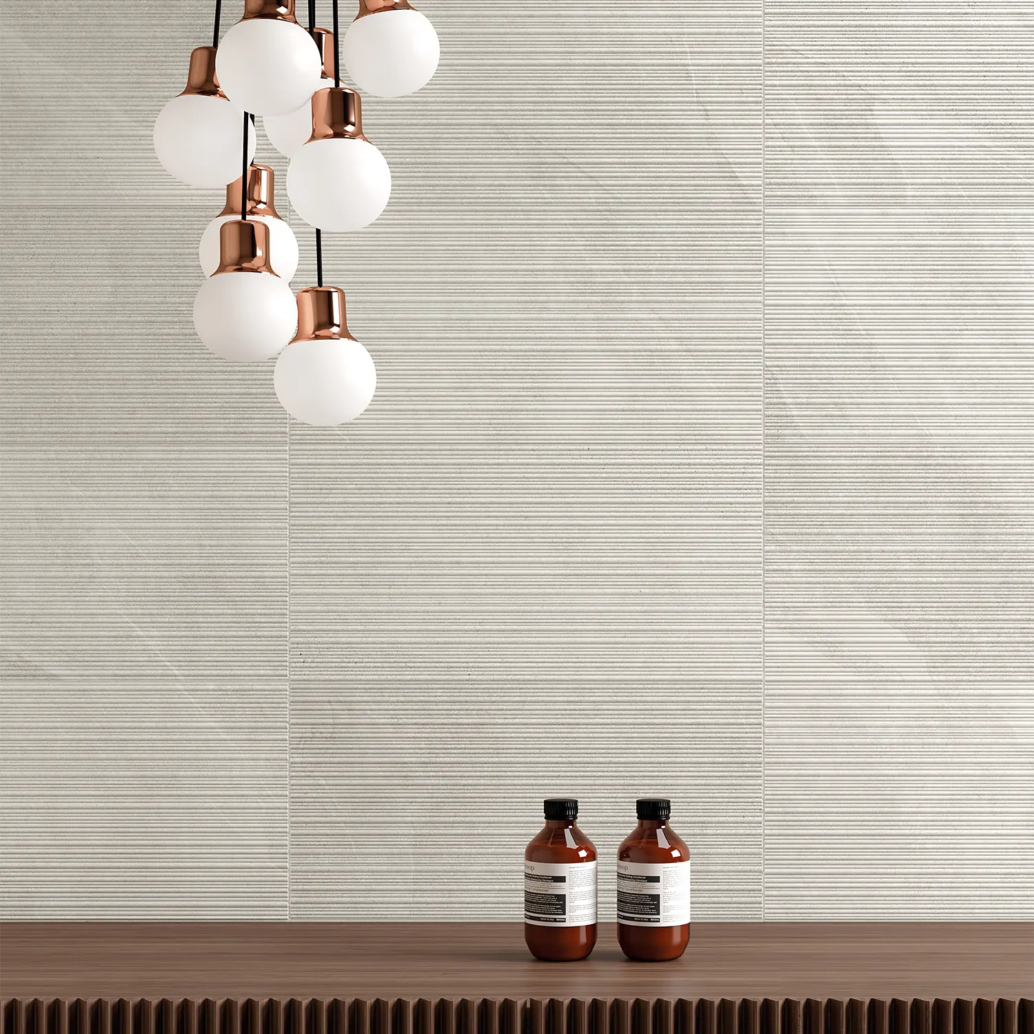 Ein besonderer Blickfang ist das aufwendig gestaltete 3D-Relief mit feiner Linienstruktur. Durch das reizvolle Zusammenspiel von Licht und Schatten entsteht eine lebendige Oberfläche mit spürbarer Tiefe und moderner Dynamik. Als dekorative Ergänzung zur Shale Fliesen-Kollektion eröffnet Shale Moon Ribbed vielseitige Möglichkeiten für individuelle Wandgestaltungen. Ob als stilvolle Akzentwand, im Duschbereich oder als dezentes Highlight in puristischen Raumkonzepten – dieses Dekor setzt elegante Akzente mit natürlicher Wirkung.