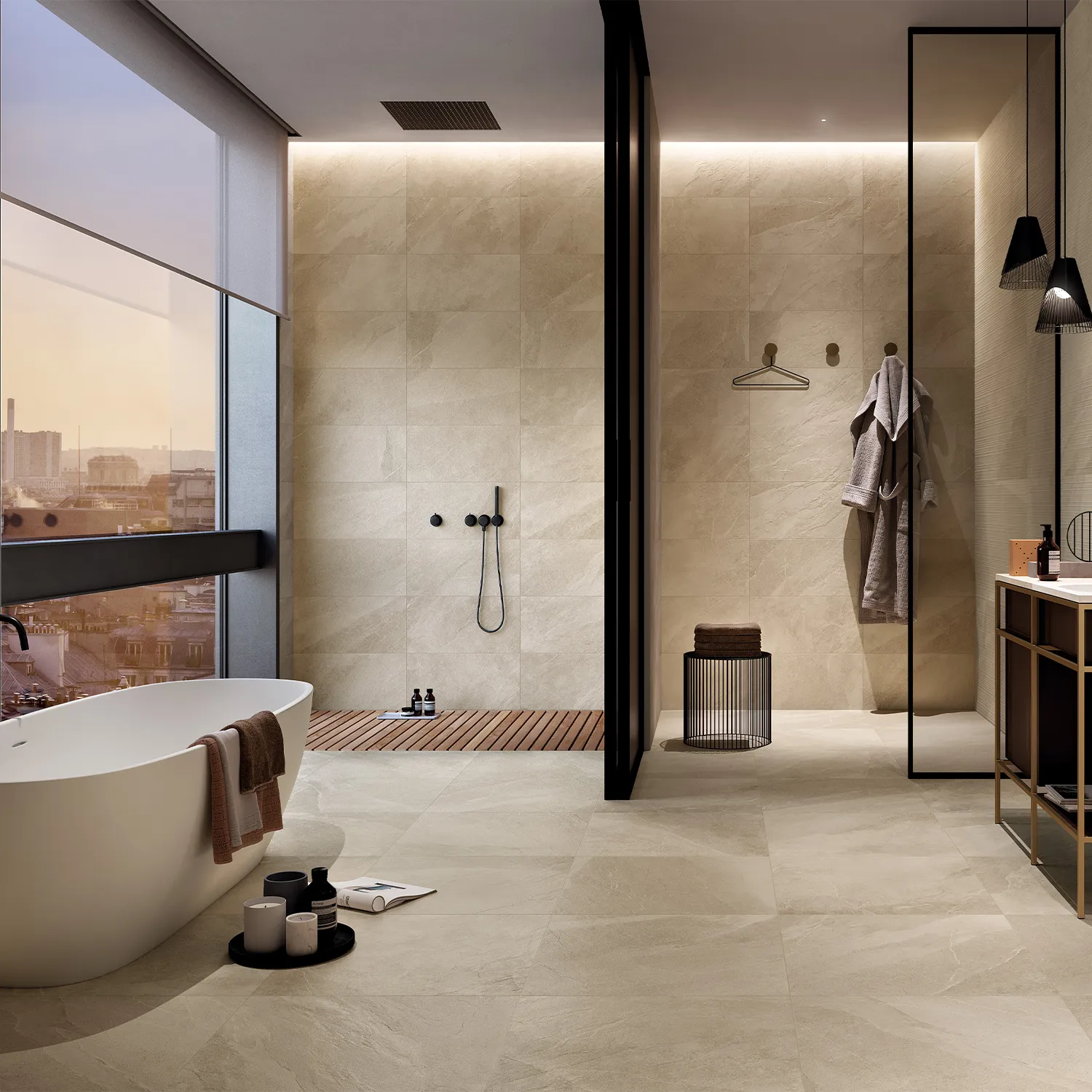 Ob als hochwertige Bodenfliese oder als stilvolle Lösung für Wand und Boden: Die Italgraniti Shale Sand eröffnet vielseitige Gestaltungsmöglichkeiten in Bad, Küche, Wohnbereich oder auch in stark frequentierten Objektbereichen. Das Format 30 x 60 cm sorgt für ein ausgewogenes Flächenbild, während die kalibrierte Ausführung eine präzise Verlegung mit einem ruhigen, hochwertigen Gesamtbild unterstützt. So entstehen elegante Raumkonzepte mit klaren Linien und einer authentischen Schieferoptik.