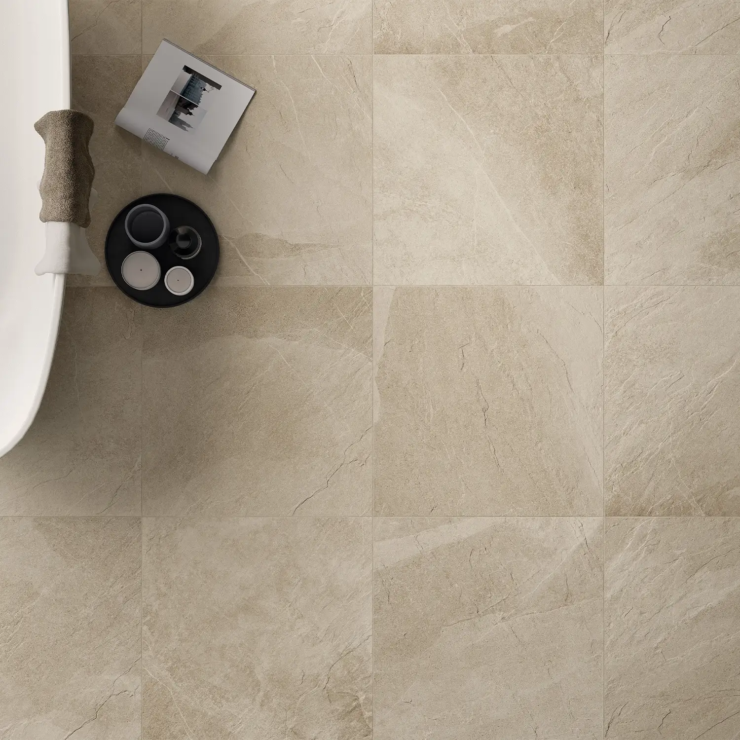 Die Bodenfliese Shale Sand von Italgraniti bringt die natürliche Schönheit von Schieferoptik in eine moderne und besonders wohnliche Form. Im Format 60 x 60 cm sorgt sie für ein harmonisches Flächenbild und verleiht Wohnräumen, Küchen, Fluren oder offenen Bereichen eine stilvolle, zeitlose Ausstrahlung. Die authentisch wirkende Oberfläche mit feiner Struktur schafft Tiefe und Charakter und verbindet natürliche Optik mit elegantem Design. So entsteht ein Boden, der modern wirkt und gleichzeitig eine warme, einladende Atmosphäre schafft.