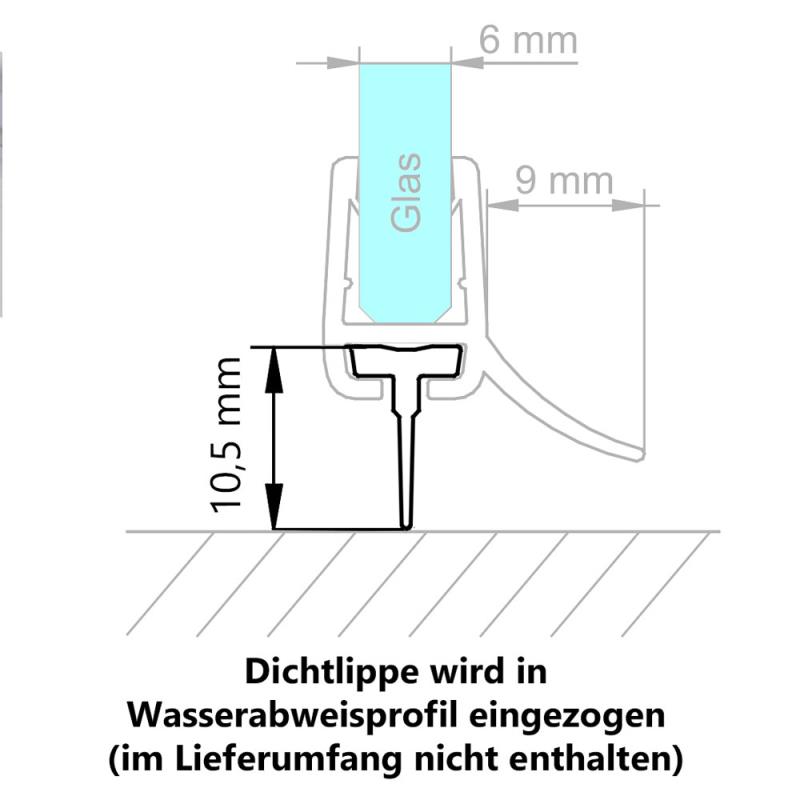 Die Schulte Dichtlippe wird waagerecht in eine Duschdichtung, passend für eine Glasstärke von 6 mm, eingeschoben. Die Dichtlippe ist in verschiedenen Höhen und Längen erhältlich.Individuell kürzbar auf die gegebene Breite der Duschtür.