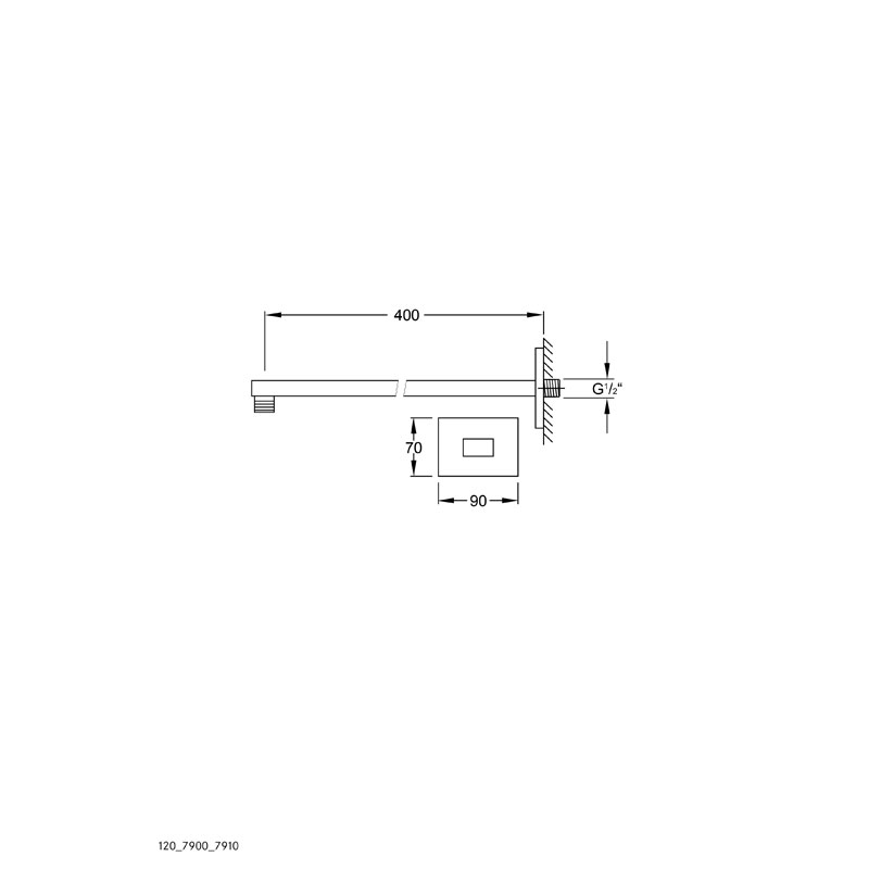 Brausearm zur Wandmontage mit verstärkter Wandhalterung, Rosette: 70 x 90 mm, Gewinde 1/2"
