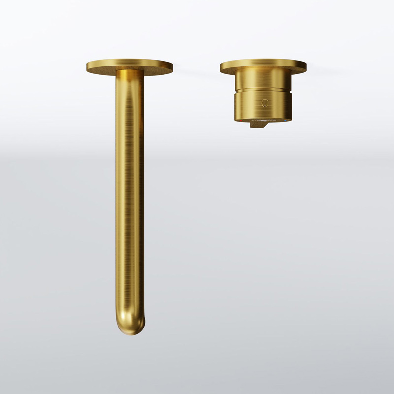 Der Steinberg Serie 341 Wand-Waschtisch-Einhebelmischer überzeugt durch sein elegantes, rundes Design und hochwertige Verarbeitung aus robustem Messing.