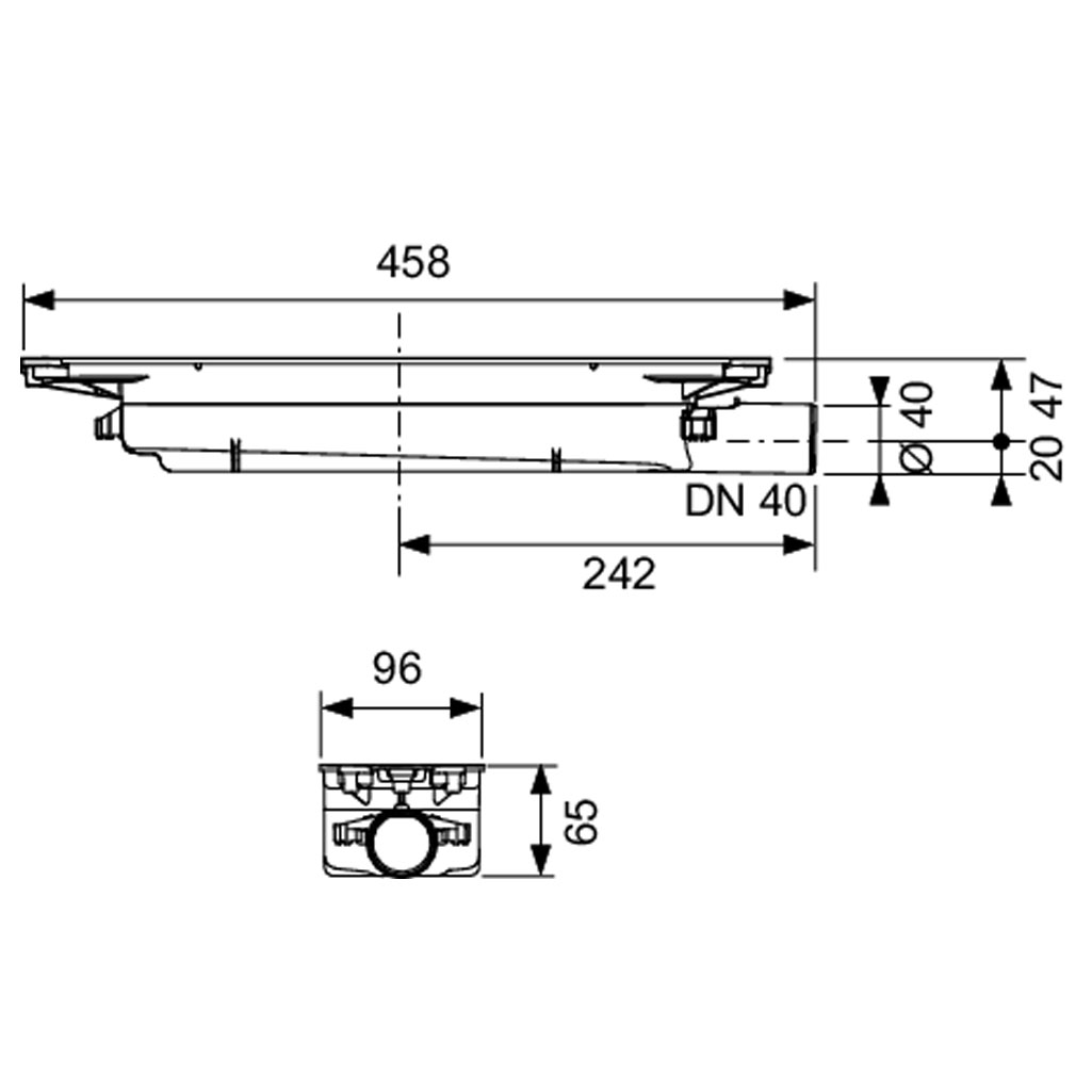 TECEdrainprofile Ablauf "flach", DN 40 Auslauf seitlich