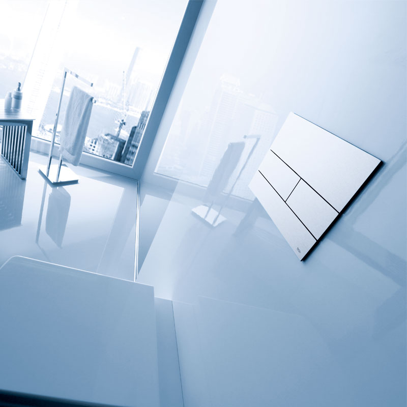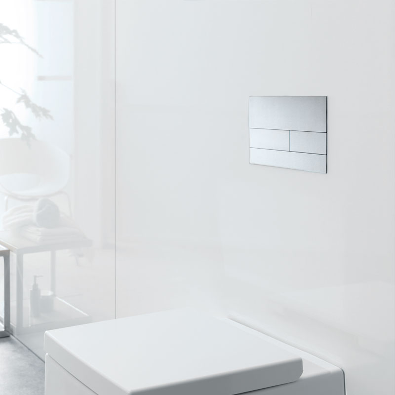 Sehr flache Metallbetätigungsplatte mit gummigepufferten Betätigungstasten.Inklusive Betätigungsstangen und Befestigungsmaterial. Kompatibel zum Einwurfschacht für Reinigungstabs.Durch die klar strukturierte Oberfläche und den extraflachen Aufbau wirkt die Platte leicht und elegant. Die spezielle Tastenmechanik sorgt für eine angenehme Haptik und die Anti-Fingerprint-Beschichtung* für ein makelloses Erscheinungsbild. Der Einbau der neuen Betätigungsplatte wird gegenüber dem Vorgängermodell weiter vereinfacht; die Funktion des Montagerahmens ist jetzt integriert.