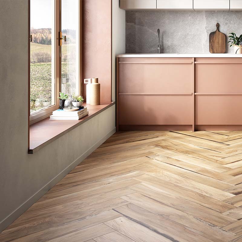 Die Farbe Oak repräsentiert die robuste und vielseitige Natur der Eiche und bringt eine beruhigende Erdigkeit in Ihr Zuhause. Mit dem großzügigen Format von 15 x 100 cm lassen sich die Fliesen zu einem ansprechenden Fugenbild verlegen, das den Raum optisch vergrößert und für ein harmonisches Gesamtbild sorgt. Die kalibrierte Herstellung der Fliesen ermöglicht ein extra schmales Fugenbild, was den nahtlosen Übergang zwischen den Fliesen fördert und so den natürlichen Look eines Holzbodens noch weiter verstärkt.