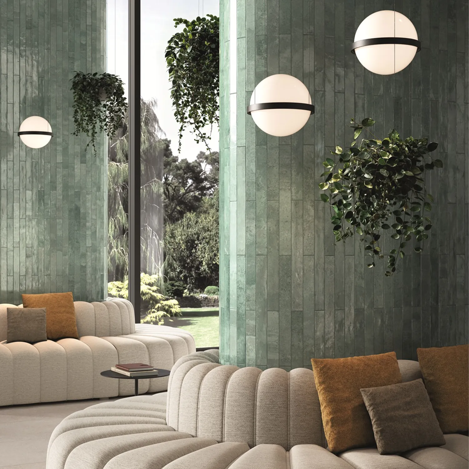 Die Kollektion Glow steht für echtes handwerkliches Design. Jede Fliese besitzt absichtlich unregelmäßige, nicht kalibrierte Kanten sowie leichte Maßunterschiede. Dadurch entsteht der authentische Look traditionell gefertigter Fliesen, bei dem jedes Stück seinen eigenen Charakter zeigt und die Fläche besonders lebendig wirkt. Die glänzende Oberfläche verstärkt diesen Effekt, reflektiert Licht und lässt das Hellgrün je nach Blickwinkel subtil variieren.