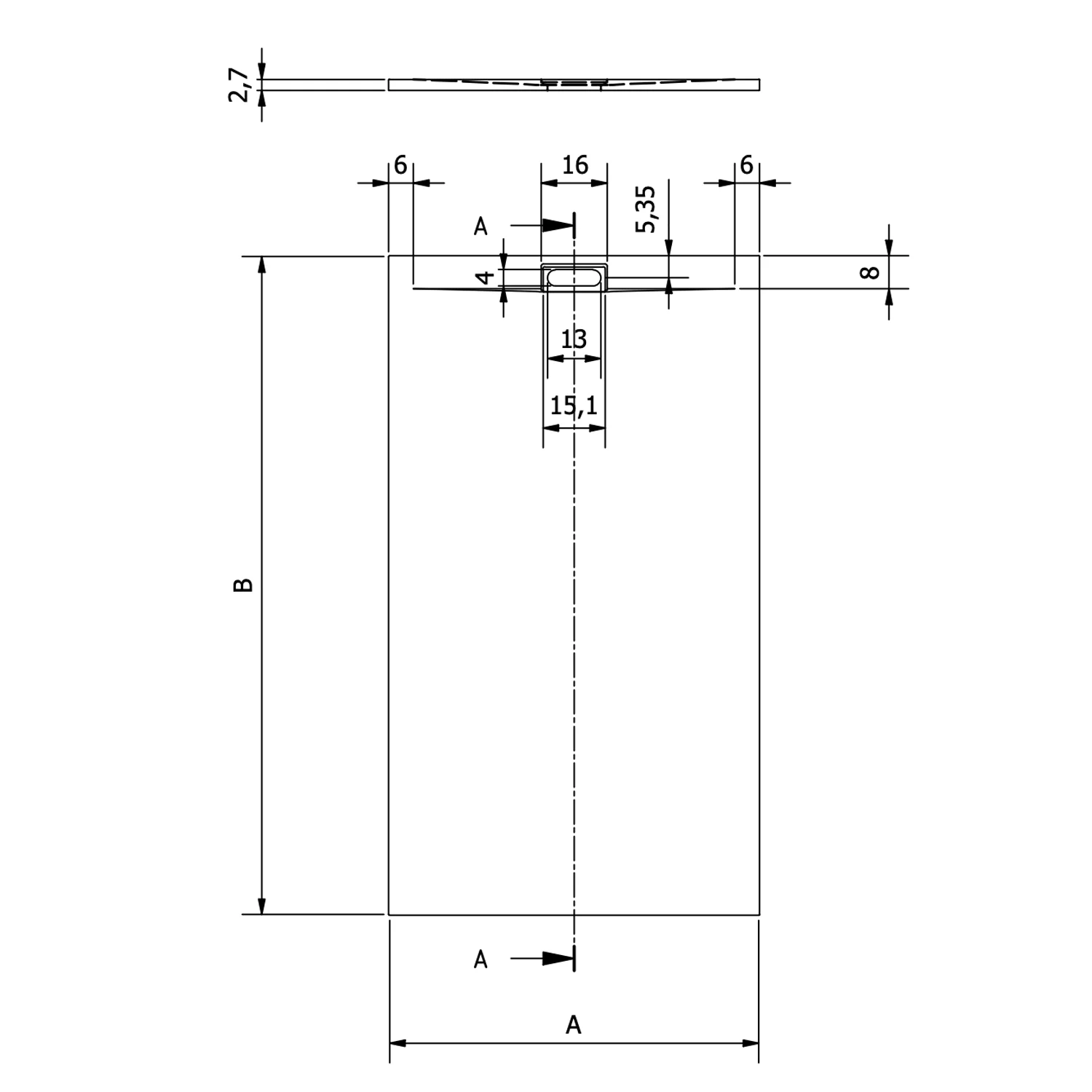 | Ablaufloch: | 40 x 130 mm |