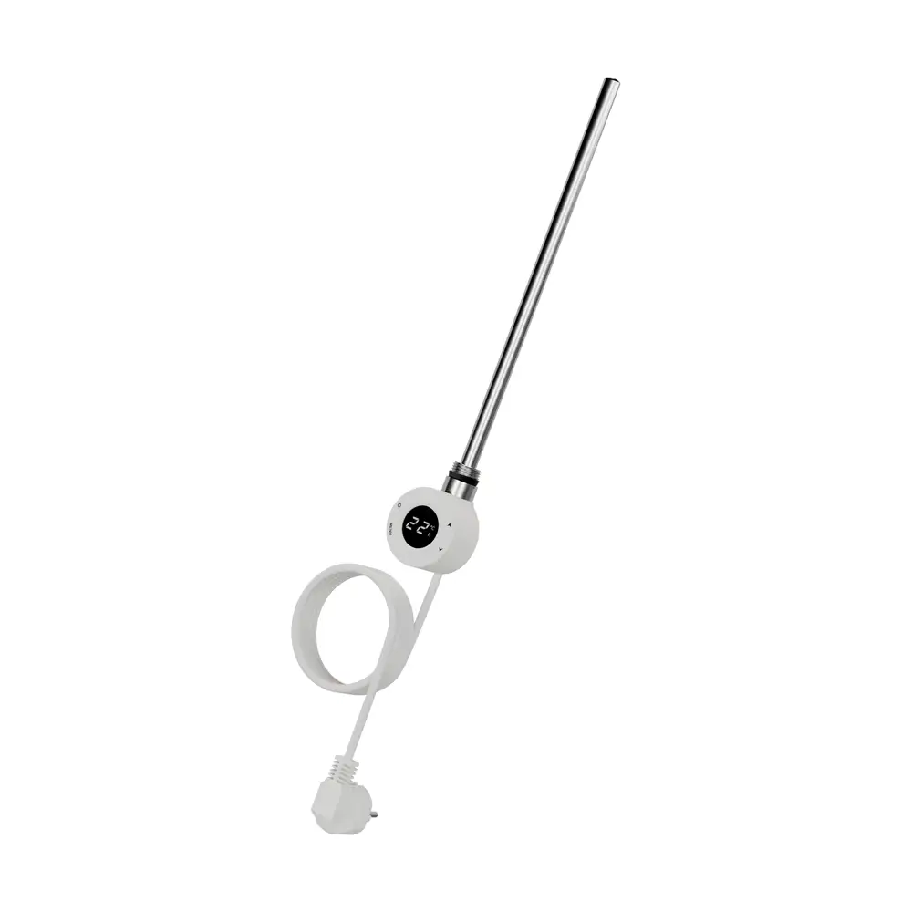 Der Corpotherma Heizstab Typ 6.1 bringt smarte Wärme mit klarer Linienführung in Ihren Alltag. Mit seinem runden Design fügt er sich dezent in moderne Interieurs ein und überzeugt zugleich durch einen integrierten Raumthermostat, der die tatsächliche Raumtemperatur misst und präzise steuert. Dank Schuko-Stecker und 1,2 m Anschlusskabel ist die Installation unkompliziert – einstecken, Wunschtemperatur einstellen und behagliche Wärme genießen. Erhältlich in den Farben Weiß oder Mattschwarz, passt der Heizstab optisch zu unterschiedlichsten Heizkörpern und Einrichtungsstilen.