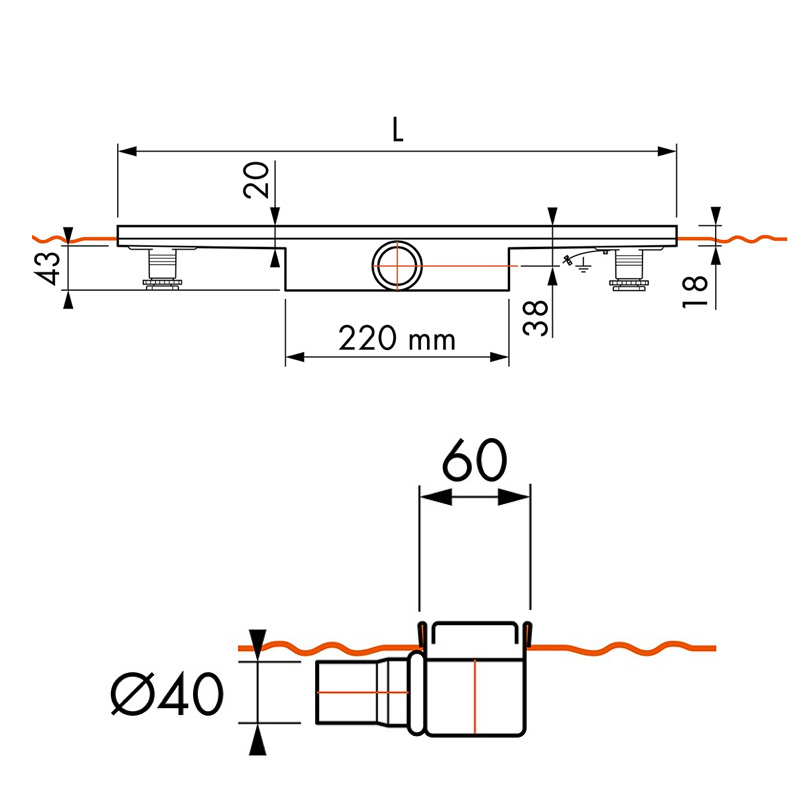 | Lieferumfang: | Duschrinnen Unterteil, Duschrinnen Rost, Sifongehäuse, vormontierter Dichtvlies WPS |