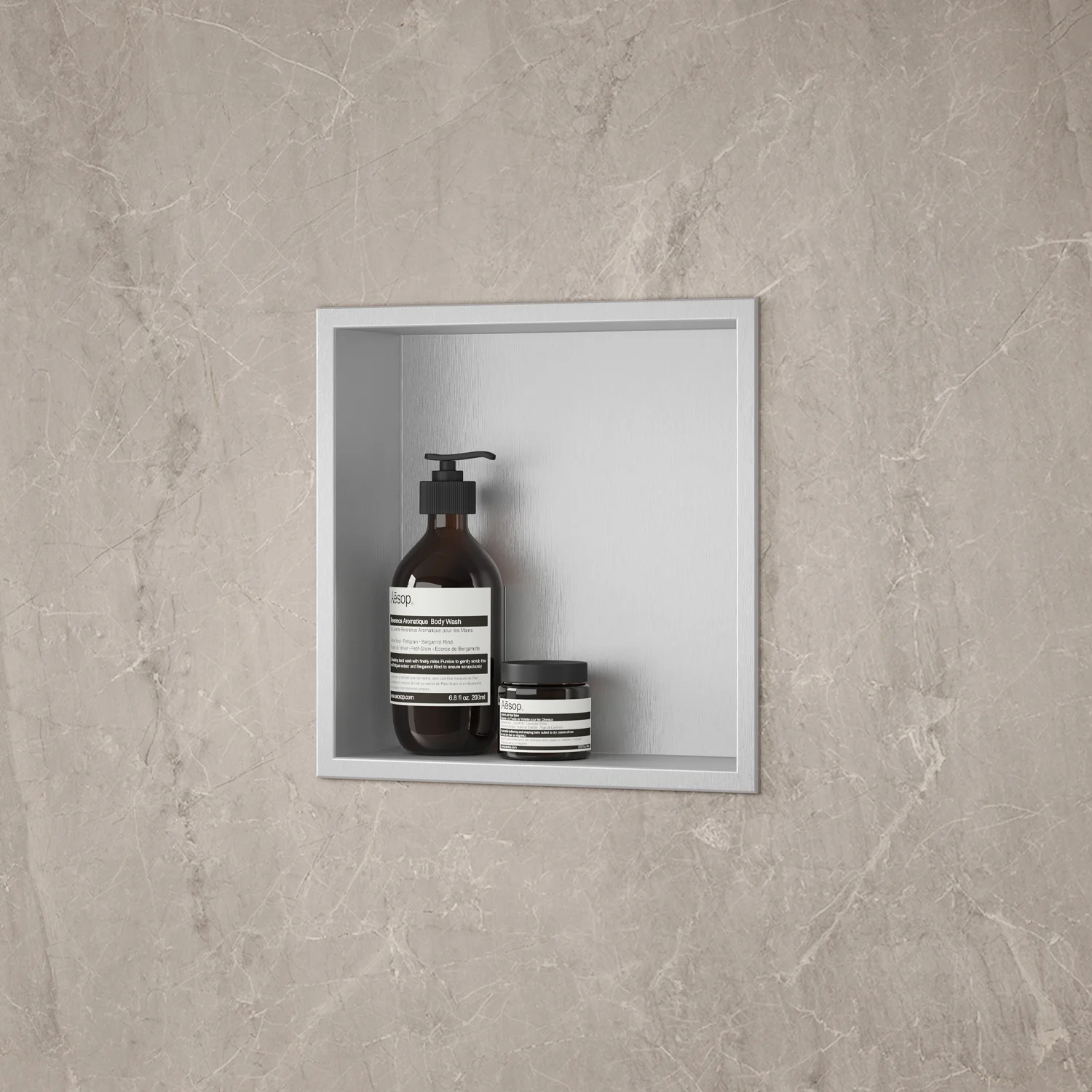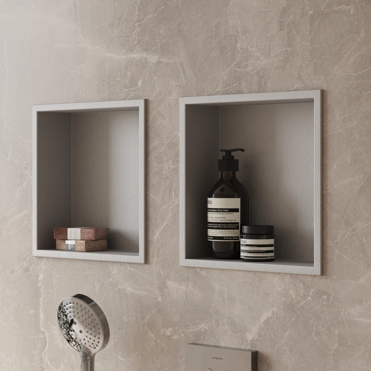 StorageFit steht für eine hochwertige Edelstahl Wandnische, die auf Langlebigkeit und Alltagstauglichkeit ausgelegt ist. Die Oberfläche ist je nach gewünschtem Badstil in Edelstahl gebürstet, Mattschwarz oder Mattweiß erhältlich. Damit passt die Wandnische sowohl zu zeitlosen Armaturen als auch zu modernen, kontrastreichen Badkonzepten. Für die Varianten in Mattschwarz oder Mattweiß sorgt eine robuste Ausführung aus Edelstahl und pulverbeschichtetem Finish für eine besonders gleichmäßige, matte Anmutung.