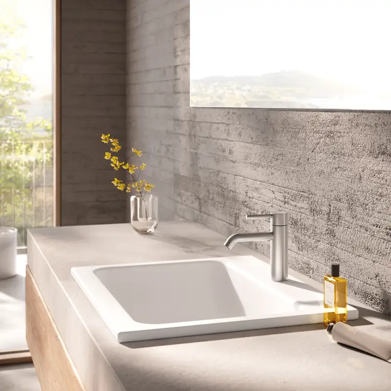 Die Herzbach Deep iX Waschtisch-Einlochbatterie M-Size überzeugt durch ihr modernes Design in edlem, gebürstetem Edelstahl und ist in zwei Auslauflängen – 130 mm und 150 mm – erhältlich.Sie fügt sich harmonisch in jedes Badambiente ein und bietet dabei höchsten Bedienkomfort.
