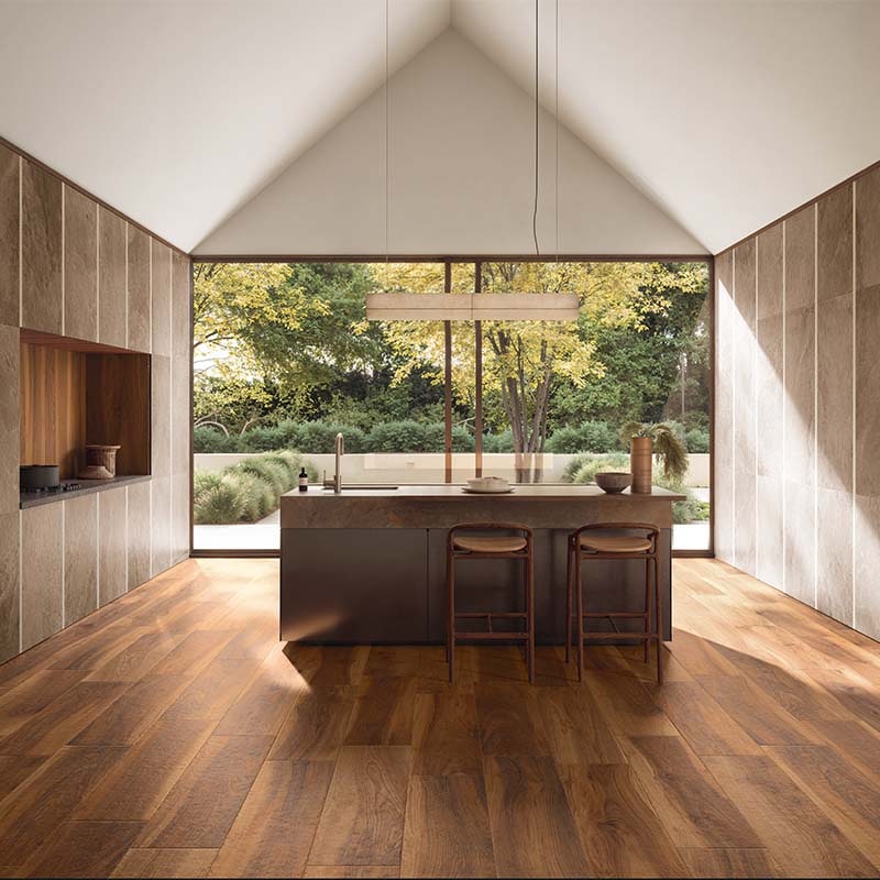 Setzen Sie mit der Legni D’Italia Bodenfliese in rotbrauner Nussbaum-Optik stilvolle Akzente und schaffen Sie ein Ambiente, das Natürlichkeit, Eleganz und Widerstandsfähigkeit harmonisch miteinander verbindet.