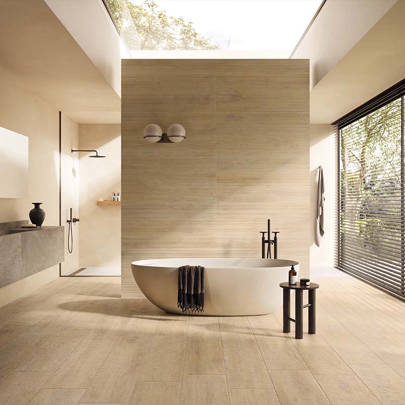 Setzen Sie mit der Legni D’Italia Bodenfliese in edler Ulmenholz-Optik stilvolle Akzente und schaffen Sie ein Ambiente, das Natürlichkeit, Eleganz und Robustheit harmonisch miteinander verbindet.