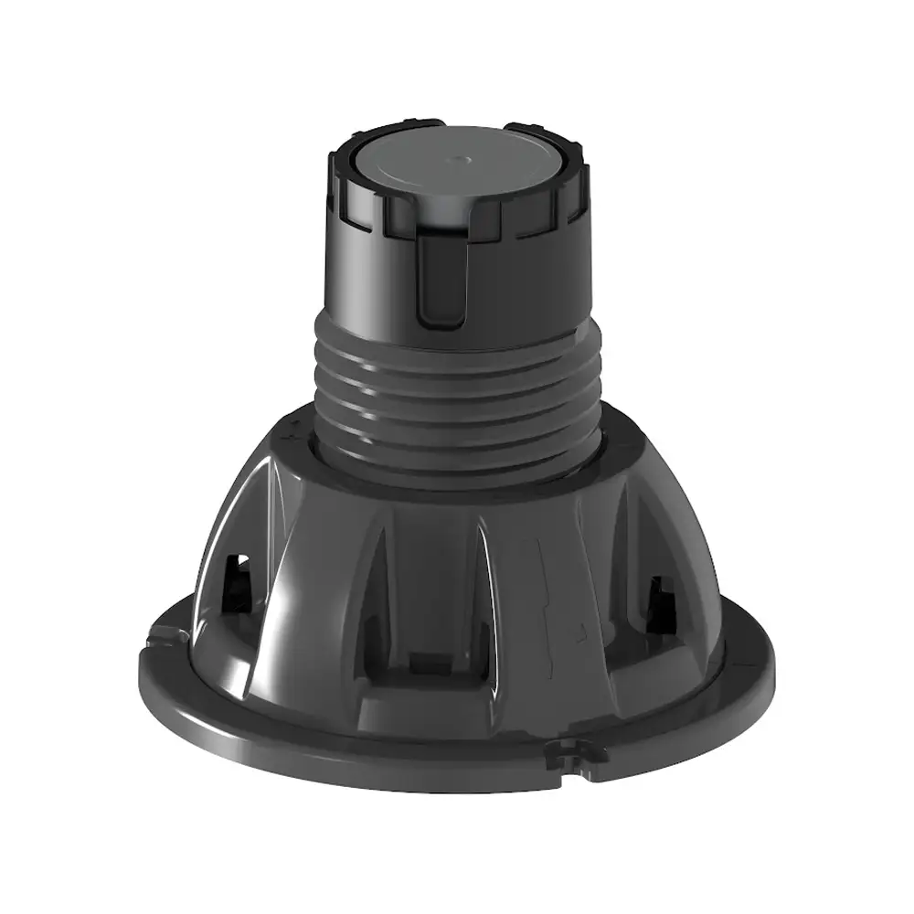 Jeder Fuß ist im Verstellbereich von 90 bis 112 mm präzise höhenjustierbar, sodass Bodenunebenheiten ausgeglichen und das gewünschte Gefälle exakt eingestellt werden können.