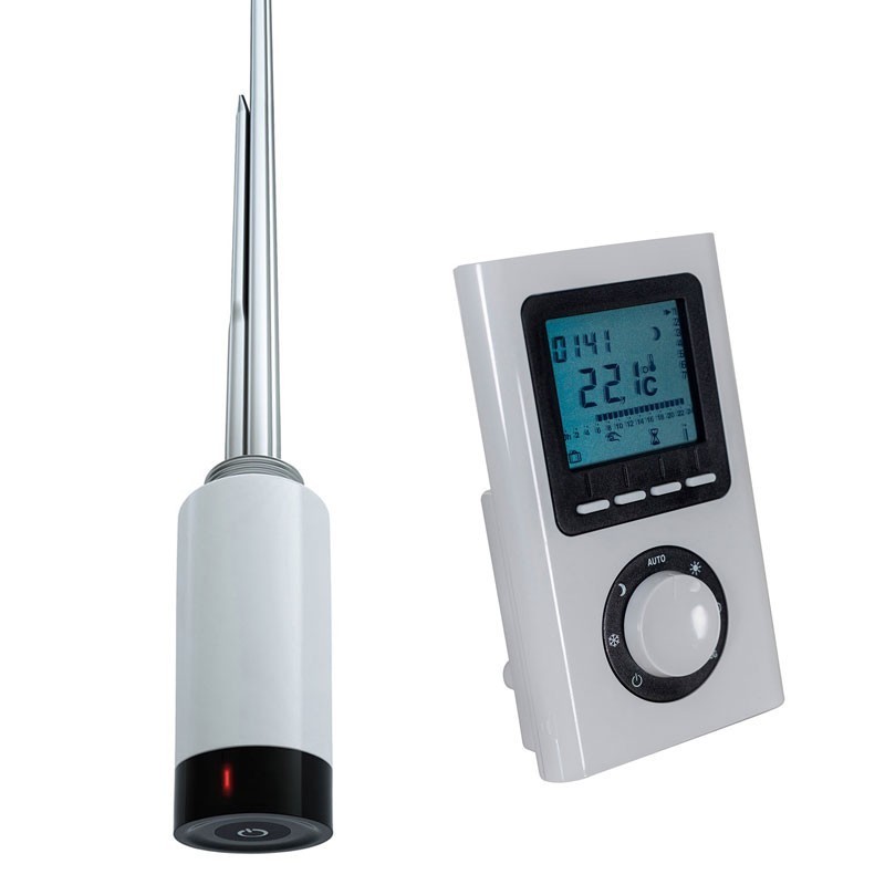Der HSK Heizstab 4 ist in den Farben Weiß, Silber und Schwarz Matt erhältlich, während der batteriebetriebene Fernregler in Weiß geliefert wird. Bitte beachten Sie, dass sich der Heizstab und der Fernregler im gleichen Raum befinden müssen, um optimal zu funktionieren.