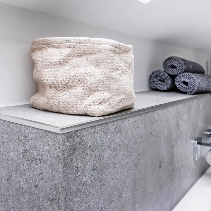 Bei der Verarbeitung setzen Sie das perfekt angepasste Montage-Kit ein, mit dem sich die RenoDeco Designplatten Wandverkleidung schnell und günstig befestigen lässt. Elegante Abschlüsse und Kanten meistern Sie mit den RenoDeco Profilen, die Sie ganz individuell in rund oder eckig sowie in Aluminium-Optik oder Chrom auswählen. Steht Ihnen irgendwann der Sinn nach Veränderung, sind die Aluminiumelemente der RenoDeco Designplatten Wandverkleidung zu 100 % recycelbar. Die RenoDeco Designplatten Wandverkleidung ist ideal für Sie, wenn Sie abseits oder zusätzlich zu einer klassischen Badezimmergestaltung mit Wandfliesen eine hochwertige und zugleich attraktive Gestaltung Ihrer Duschkabine oder einer Wandfläche wünschen. Dekore in Holz, Stein und Metall stehen für Ihre Ideen zur Verfügung. Kreativität verwirklicht sich durch die RenoDeco Designplatten Wandverkleidung zu Ihrem unverwechselbaren Stil.