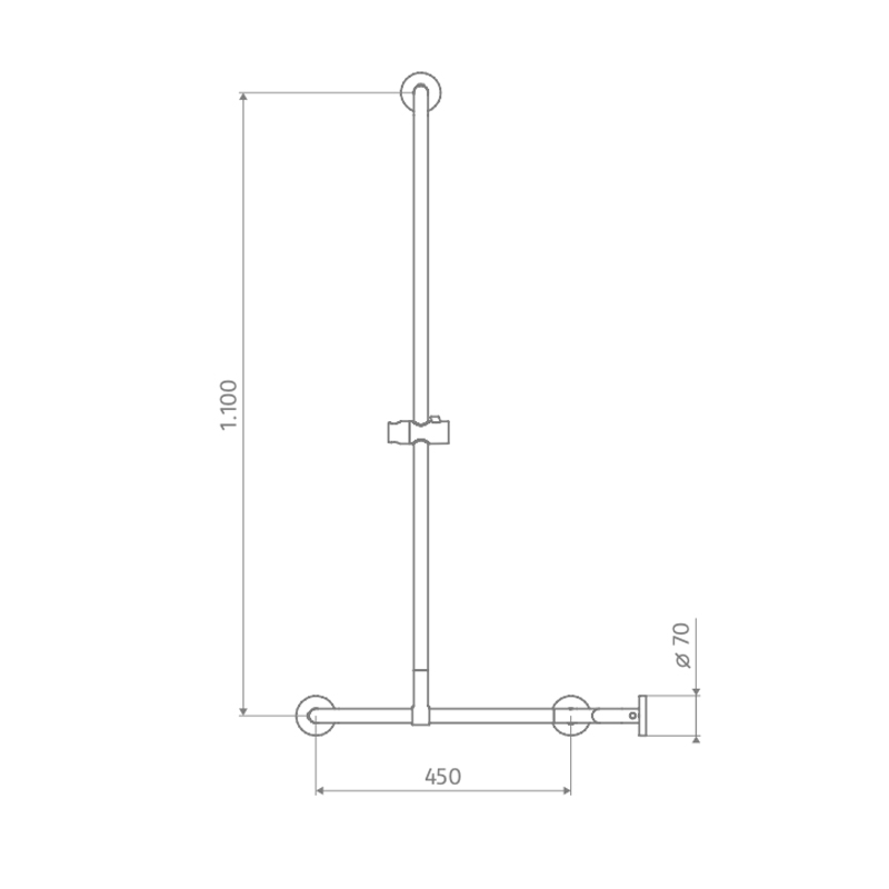 Der HSK Solida Stützgriff in T-Form ist eine hochwertige Brausestange, die speziell für die Montage in der Innenecke konzipiert wurde.