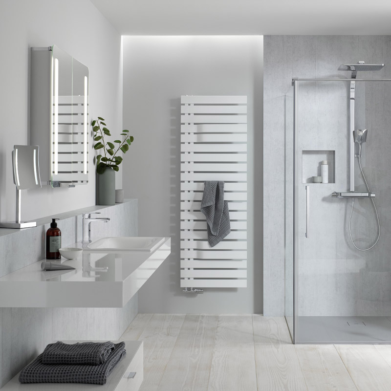 So nutzen die Heizkörper der Serie Yenga Plus von HSK immer den richtigen Platz im individuell gestalteten Badezimmer. Voraussetzung für die Auswahl ist der Warmwasserbetrieb im Heizkreislauf. In dieser Ausführung ist der Anschluss als Elektroheizung für das Badezimmer nicht vorgesehen.Heizelemente der Serie Yenga Plus kombinieren Funktion und Optik. Der Designheizkörper besteht aus Stahl mit einer Farbbeschichtung. Der Farbkatalog harmoniert mit moderner Badarchitektur, die auf klare Farben, Glas oder Holz setzt. Die durchdachte Qualität zeigt sich auch darin, dass die Befestigungen der ausgewählten Farbe für den Heizkörper folgen. Damit tritt die Funktion gewollt in den Hintergrund und setzt den Schwerpunkt auf das moderne Design in einer Formensprache, die sich auf wenige Linien reduziert. Als Wärmequelle und Handtuchheizung steigert HSK Yenga Plus die Wellnessmomente im Badezimmer. Durch seine elegante Optik wird die Badezimmerheizung zugleich Bestandteil des kreativen Konzepts.