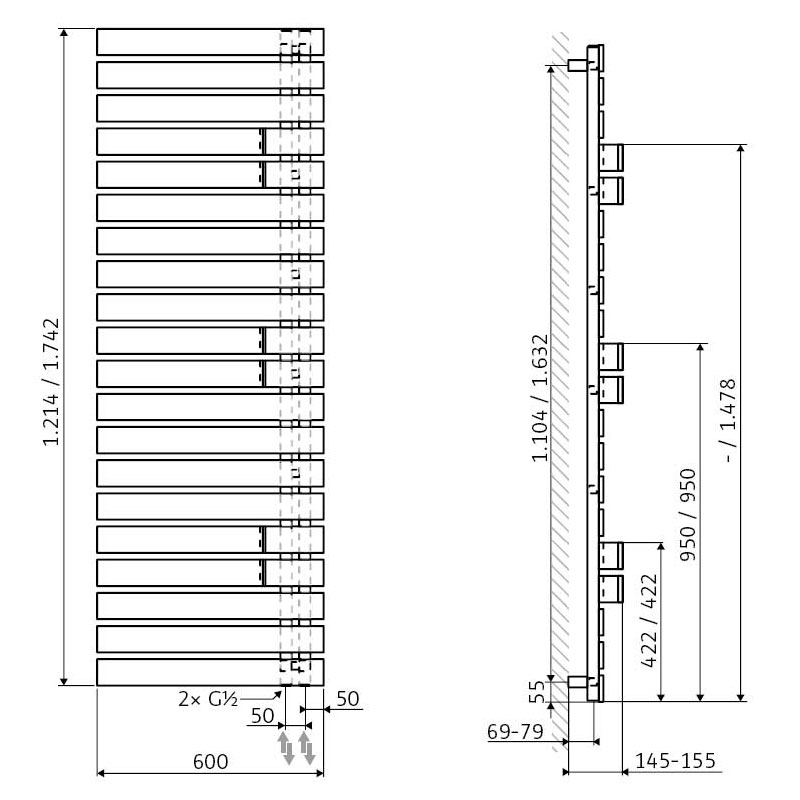 Produktinformation HSK YENGA Plus Badheizkörper 600 x 1742 mm