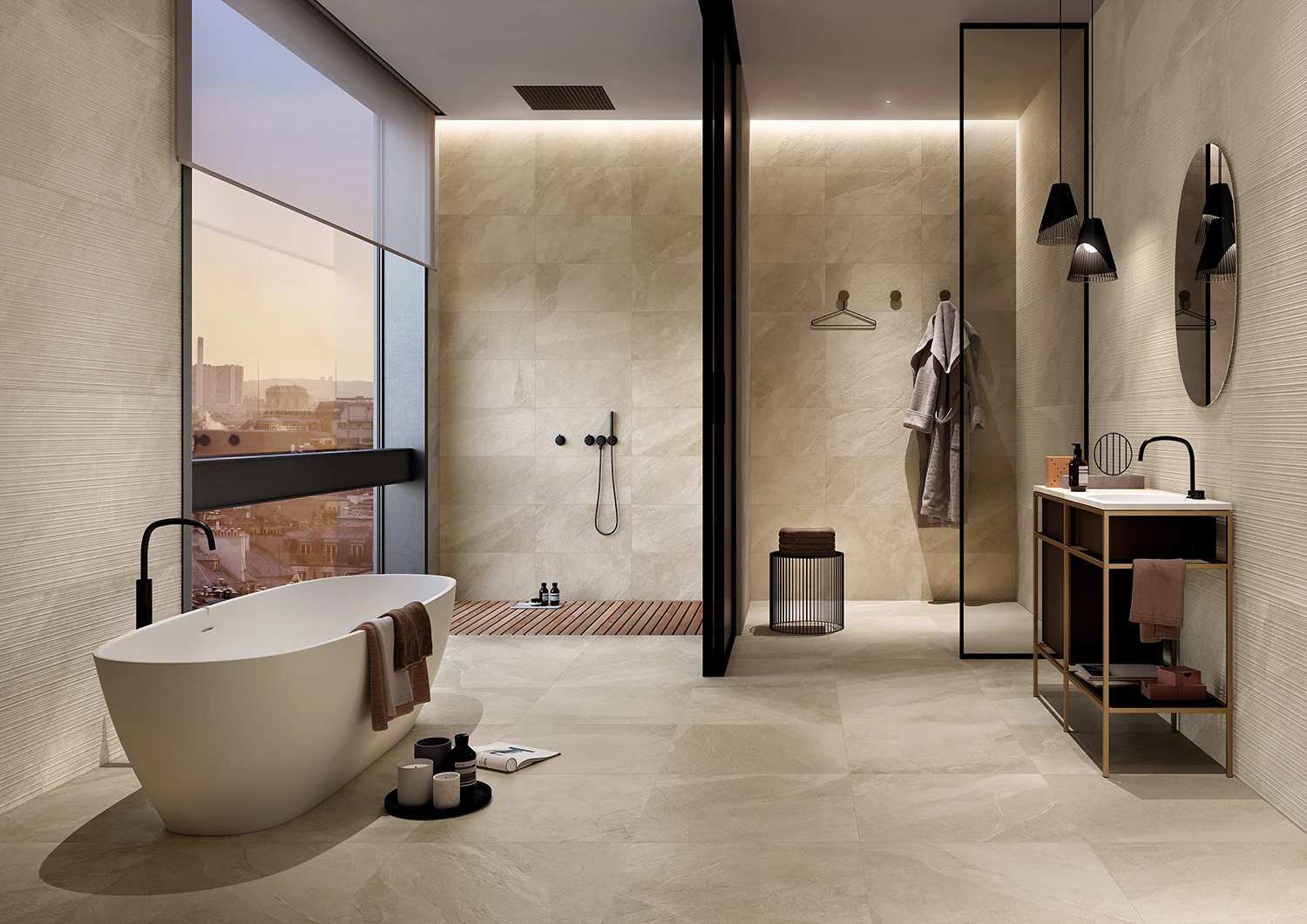 Warme, erdige Töne in Form von Feinsteinzeug Fliesen für Wand und Boden liefert die Fliesen Kollektion Terre von Italgraniti. Die Fliesen der Kollektion Terre von Italgraniti erinnern an Wandverkleidungen aus Tonputz und verleihen dadurch jedem Raum eine entspannte und einladende Atmosphäre. Ergänzt werden die Fliesen in den Formaten 30 x 60 cm, 60 x 60 cm, 40 x 80 cm, 80 x 80 cm, 60 x 120 cm und 120 x 120 cm durch strukturierte Dekorfliesen und Mosaikfliesen, mit denen sich bewusst dreidimensionale Akzente an der Wand setzen lassen. Für ein harmonisches Bild von Innen- und Außenbereich sorgen die Terrassenplatten der Serie Terre. Diese sind mit einer Materialstärke von 20 mm in den Formaten 60 x 120 cm und 80 x 80 cm in ausgewählten Farben erhältlich.