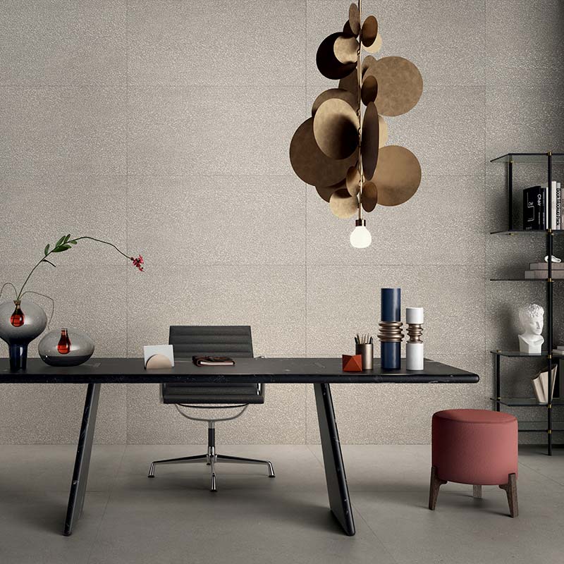 Als dicht gesintertes Feinsteinzeug ist Intense Perle robust, formstabil und pflegeleicht – ideal für stark genutzte Bereiche. Die Oberfläche Naturale bietet eine angenehm matte Haptik mit subtiler Tiefenwirkung: dezent in der Reflexion, komfortabel im Tritt und leicht zu reinigen. Kalibrierte Kanten ermöglichen präzise Verlegungen mit schmalen Fugen, was das homogene, hochwertige Gesamtbild zusätzlich unterstreicht.