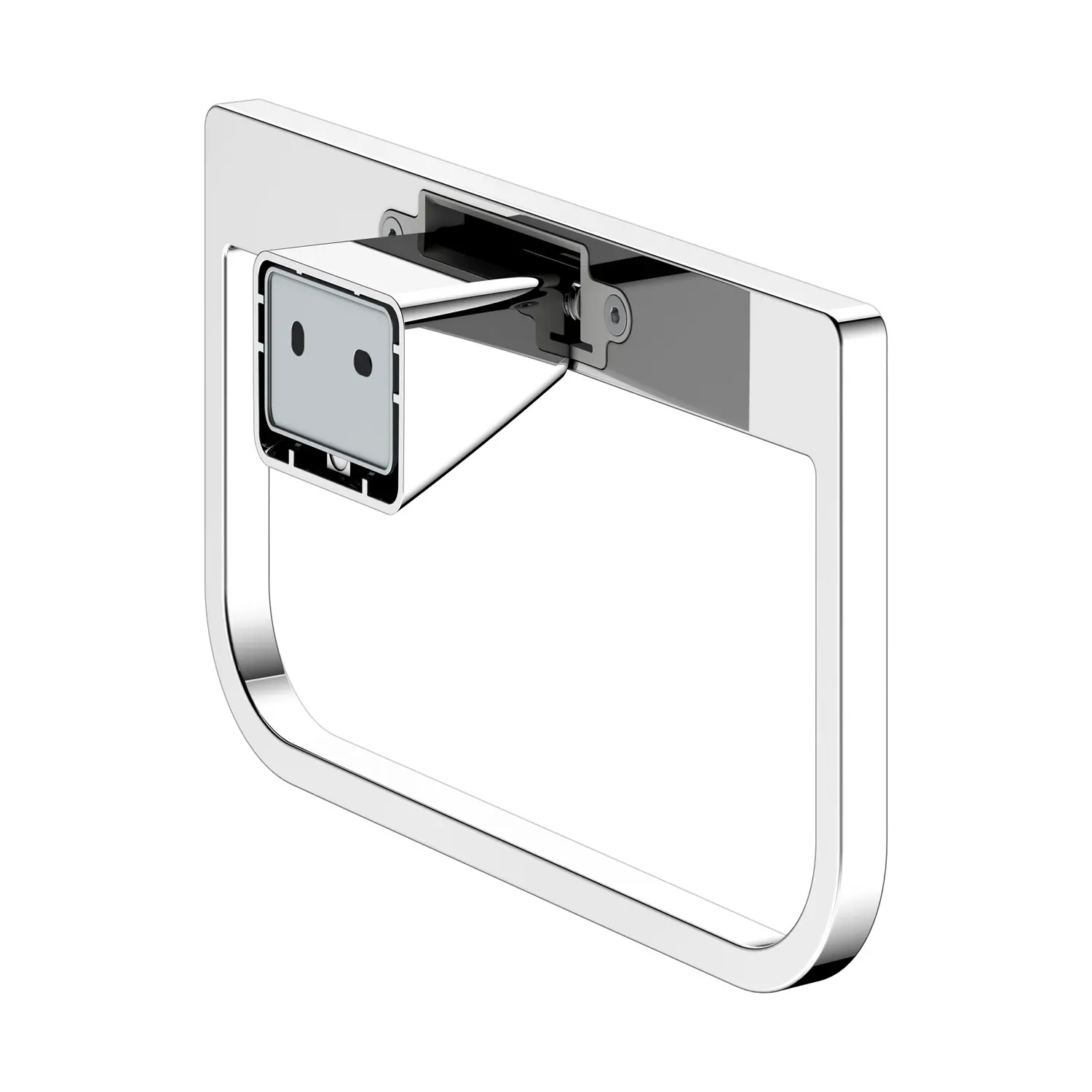 Die geschlossene, schwenkbare Form sorgt für eine komfortable Handhabung und bietet eine praktische Möglichkeit, Handtücher griffbereit und ordentlich aufzuhängen. Die verdeckte Befestigung unterstützt die klare Optik und verleiht dem Handtuchring ein besonders harmonisches Erscheinungsbild.