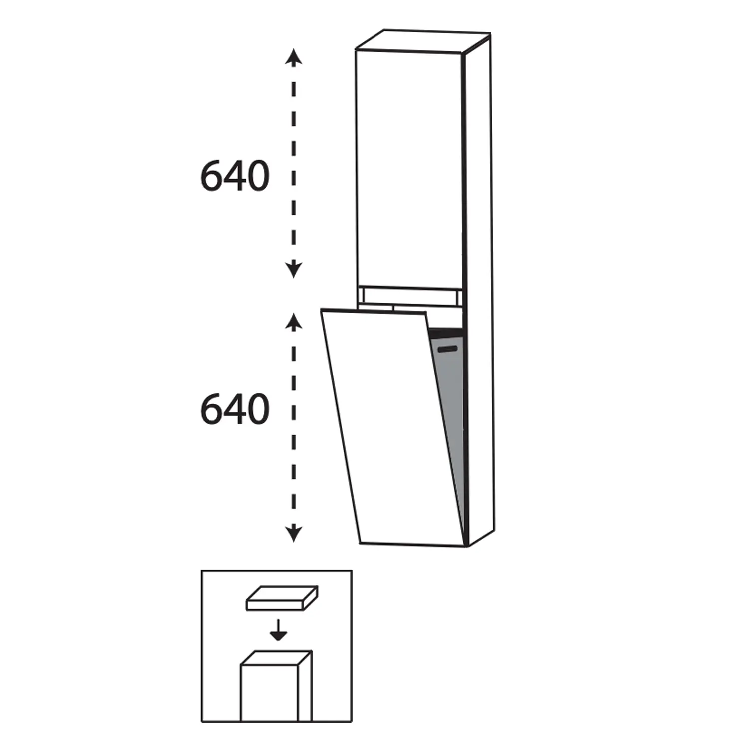 Der Schrank verfügt über eine praktische Aufteilung mit einer Tür im oberen Teil des Schrankes, dazu einem Einlegeboden, hier ist ausreichend Platz für Handtücher, Pflegeprodukte und andere Badutensilien. Im unteren Bereich des Mittelschrankes, befindet sich die Wäschekippe, die wahlweise, je nach Breite des Schrankes, entweder Platz für 25 Liter Volumen oder 36 Liter Volumen bietet. Der Stoffkorb der Wäschekippe ist in Anthrazit gehalten. Die hochwertige Verarbeitung und das robuste Material gewährleisten Langlebigkeit und Stabilität. Der Türanschlag kann wahlweise auf der rechten oder linken Seite ausgewählt werden und ermöglicht so eine flexible Integration in verschiedene Raumkonzepte.