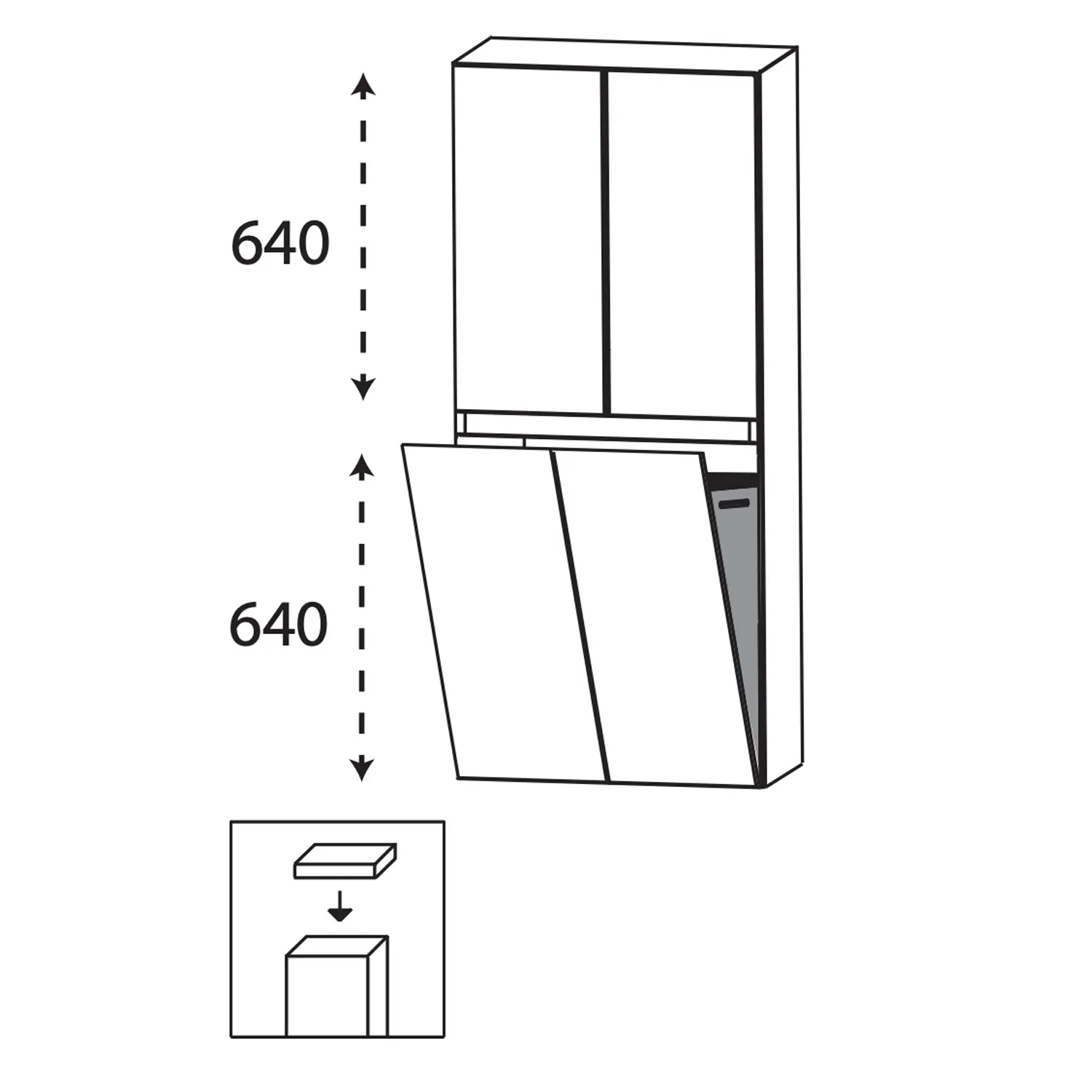 Der Schrank verfügt über eine praktische Aufteilung, 2 Türen oben inkl. Einlegeboden, die ausreichend Platz für Handtücher, Pflegeprodukte und andere Badutensilien bieten und einer Wäschekippe unten. Die hochwertige Verarbeitung und das robuste Material gewährleisten Langlebigkeit und Stabilität.