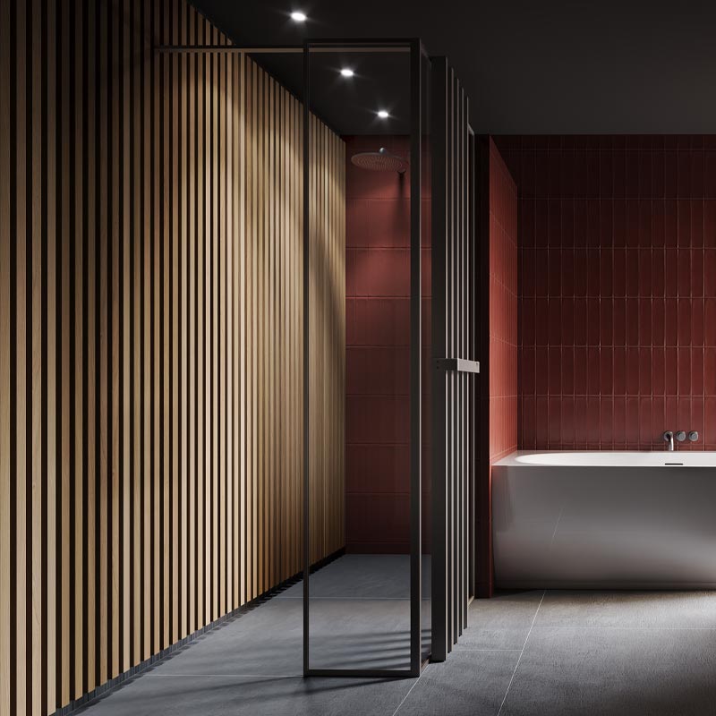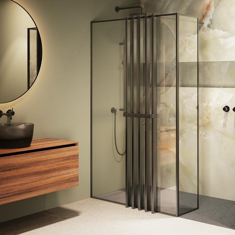 Ein besonderes Highlight des Decoscreens ist seine einfache Reinigung: Das Paneel kann mühelos kurzzeitig abgenommen werden, um das Glas gründlich zu säubern. Erhältlich in den eleganten Farben Copper Matt und Gunmetal Matt, fügt sich der Decoscreen harmonisch in moderne Badezimmerdesigns ein und setzt stilvolle Akzente.