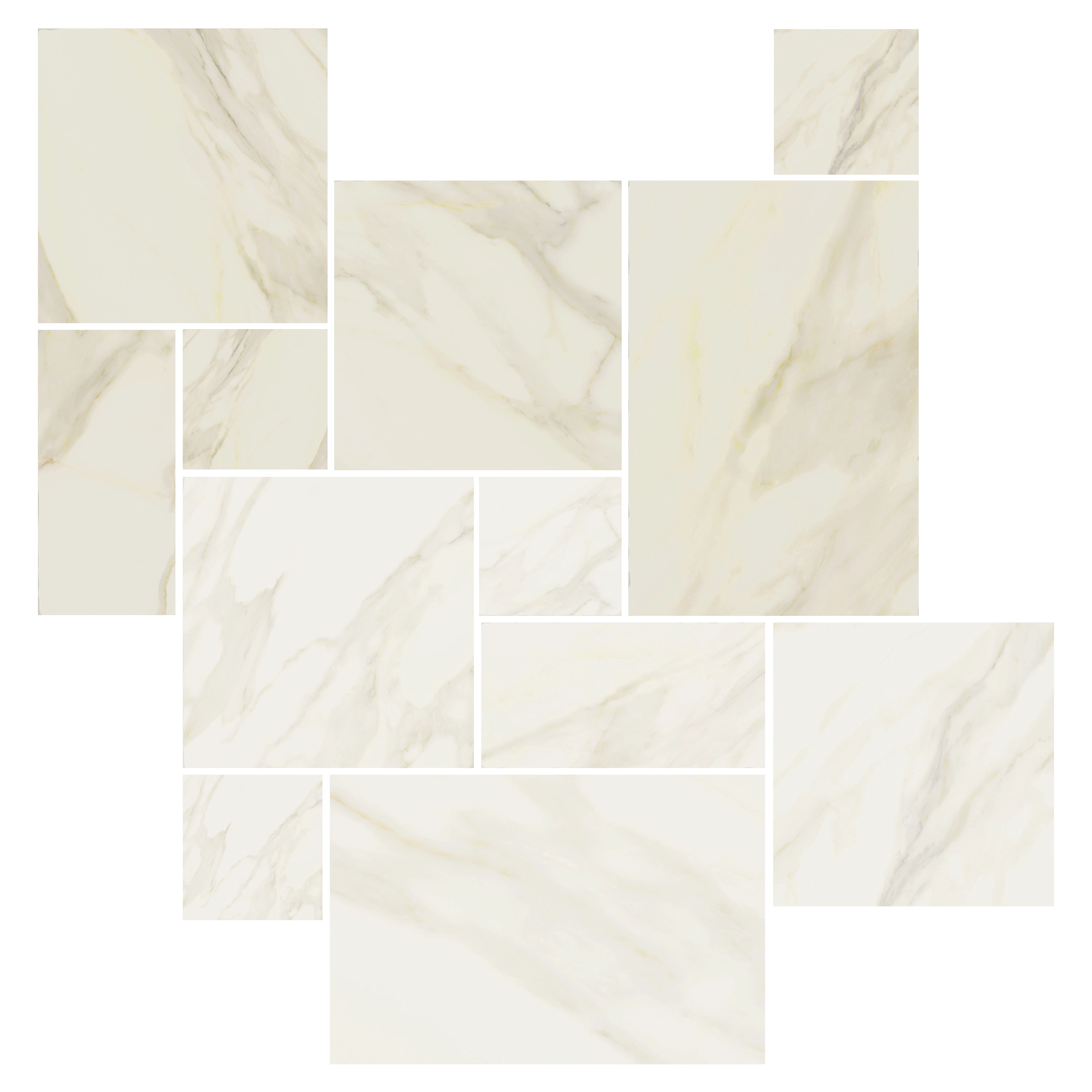 Das Bodenfliesen-Set Opus Calacatta Mod. 39 aus der Casa Collection bringt die edle Ausstrahlung von hellem Marmor in ein stilvolles, modernes Wohnambiente. Die hochwertige Calacatta-Steinoptik mit weißem Grundton und feinen goldenen Adern wirkt elegant, strahlend und zeitlos zugleich. Durch den Römischen Verband entsteht ein lebendiges Verlegebild mit besonderer Tiefe, das große wie kleine Räume optisch aufwertet und ihnen ein exklusives Flair verleiht.